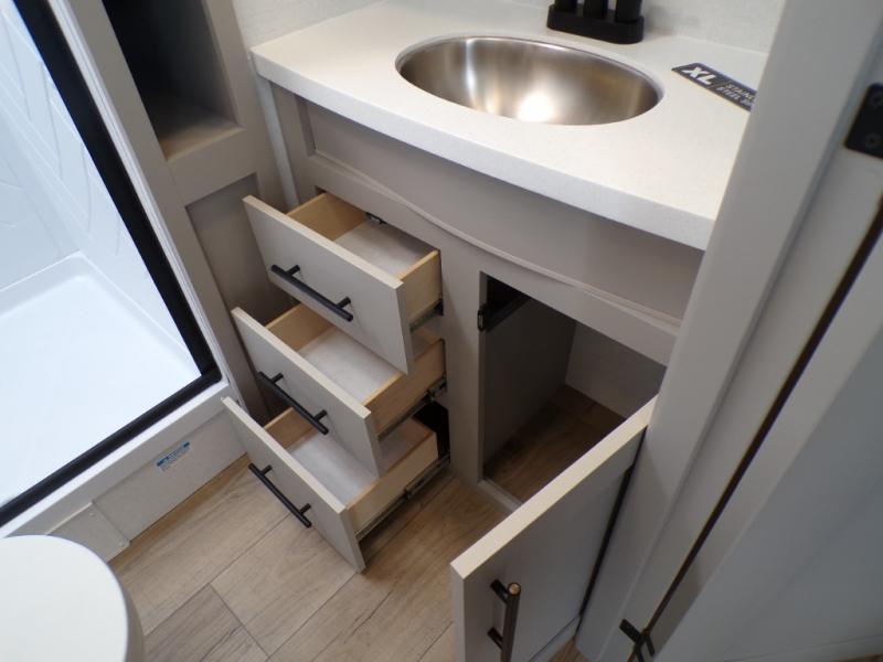 Form and function works together with every one of these Alliance RV Delta travel trailers! They are built with a walk-on roof with a seamless PVC roof covering, Mylar reinforced exterior seals, and a heated and enclosed underbelly to protect your unit in all seasons. The commercial grade vinyl flooring will be easy to clean and the oversized atrium windows throughout let in plenty of natural sunlight. With 62 cu. ft. of drop frame pass-through storage, you can bring along all of your essential camping gear plus it has USB charging for more convenience. There are many at home interior conveniences including a Bluetooth speaker, USB charging throughout, and even a pull-out kitchen trash can. Come find your favorite model today!