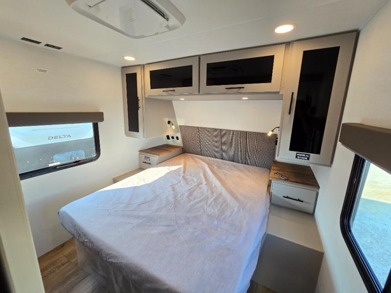 Form and function works together with every one of these Alliance RV Delta travel trailers! They are built with a walk-on roof with a seamless PVC roof covering, Mylar reinforced exterior seals, and a heated and enclosed underbelly to protect your unit in all seasons. The commercial grade vinyl flooring will be easy to clean and the oversized atrium windows throughout let in plenty of natural sunlight. With 62 cu. ft. of drop frame pass-through storage, you can bring along all of your essential camping gear plus it has USB charging for more convenience. There are many at home interior conveniences including a Bluetooth speaker, USB charging throughout, and even a pull-out kitchen trash can. Come find your favorite model today!