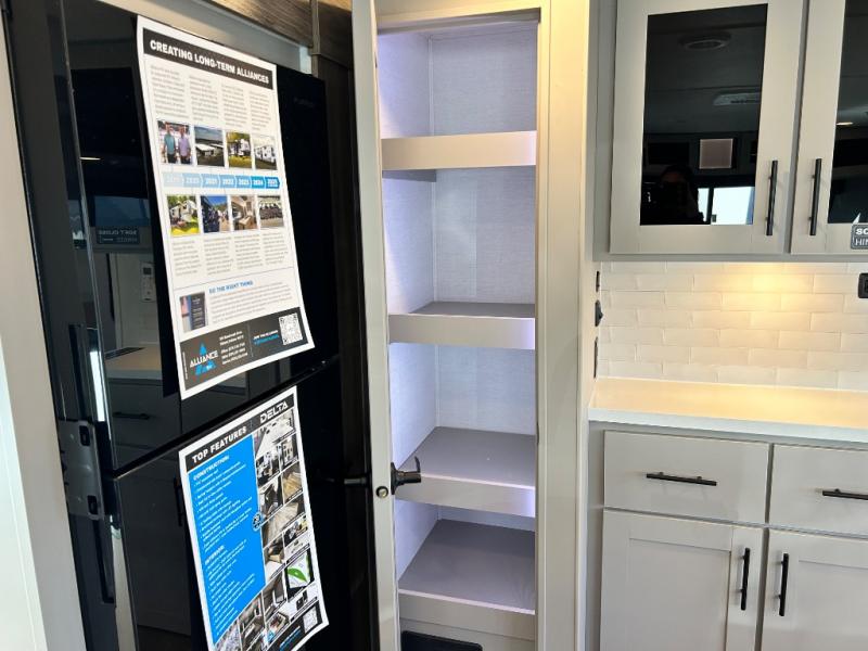 Form and function work together with every one of these Alliance RV Delta travel trailers! They are built with a walk-on roof with a seamless PVC roof covering, Mylar reinforced exterior seals, and a heated and enclosed underbelly to protect your unit. The commercial grade vinyl flooring will be easy to clean, and the oversized atrium windows throughout let in plenty of natural sunlight. With 62 cu. ft. of drop frame pass-through storage, you can bring along all of your essential camping gear plus it has USB charging for more convenience. There are many at home interior conveniences including a Bluetooth speaker, USB charging throughout, and even a pull-out kitchen trash can. Come find your favorite model today!