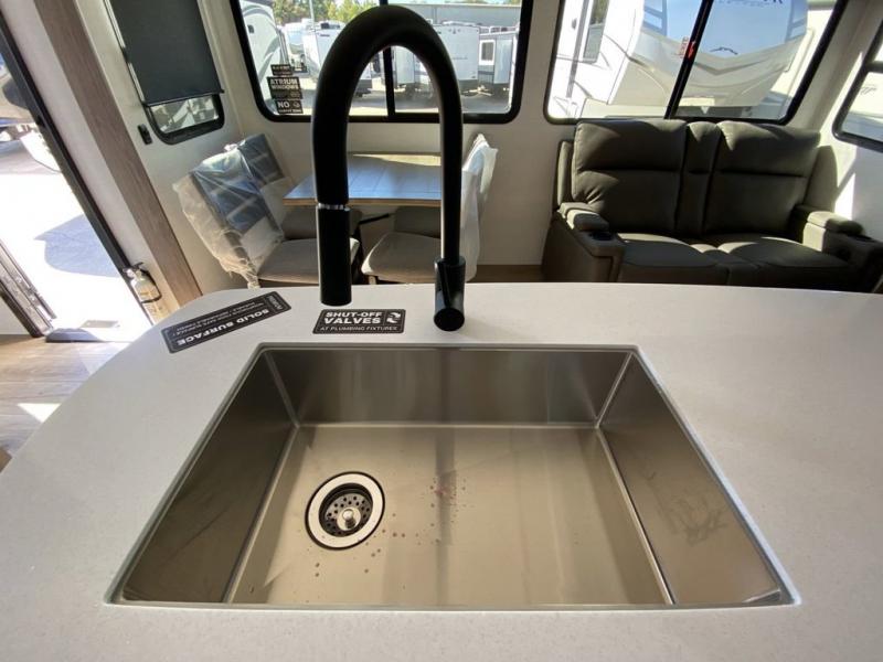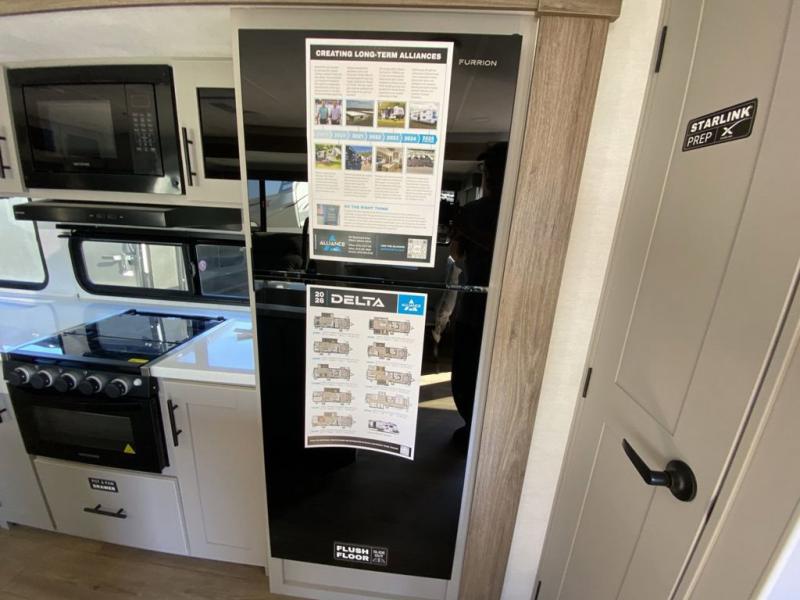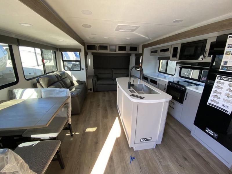 Form and function work together with every one of these Alliance RV Delta travel trailers! They are built with a walk-on roof with a seamless PVC roof covering, Mylar reinforced exterior seals, and a heated and enclosed underbelly to protect your unit. The commercial grade vinyl flooring will be easy to clean, and the oversized atrium windows throughout let in plenty of natural sunlight. With 62 cu. ft. of drop frame pass-through storage, you can bring along all of your essential camping gear plus it has USB charging for more convenience. There are many at home interior conveniences including a Bluetooth speaker, USB charging throughout, and even a pull-out kitchen trash can. Come find your favorite model today!