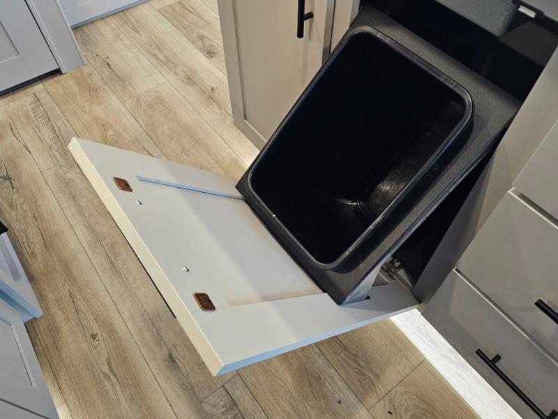 Kitchen island with tip-out trash can