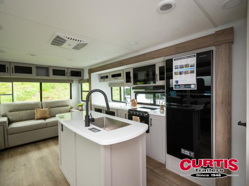 Form and function work together with every one of these Alliance RV Delta travel trailers! They are built with a walk-on roof with a seamless PVC roof covering, Mylar reinforced exterior seals, and a heated and enclosed underbelly to protect your unit. The commercial grade vinyl flooring will be easy to clean, and the oversized atrium windows throughout let in plenty of natural sunlight. With 62 cu. ft. of drop frame pass-through storage, you can bring along all of your essential camping gear plus it has USB charging for more convenience. There are many at home interior conveniences including a Bluetooth speaker, USB charging throughout, and even a pull-out kitchen trash can. Come find your favorite model today!