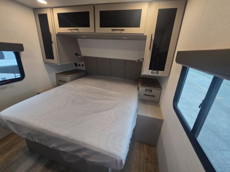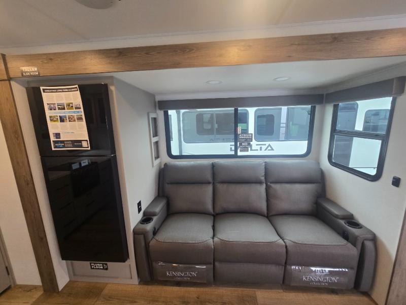 Form and function works together with every one of these Alliance RV Delta travel trailers! They are built with a walk-on roof with a seamless PVC roof covering, Mylar reinforced exterior seals, and a heated and enclosed underbelly to protect your unit in all seasons. The commercial grade vinyl flooring will be easy to clean and the oversized atrium windows throughout let in plenty of natural sunlight. With 62 cu. ft. of drop frame pass-through storage, you can bring along all of your essential camping gear plus it has USB charging for more convenience. There are many at home interior conveniences including a Bluetooth speaker, USB charging throughout, and even a pull-out kitchen trash can. Come find your favorite model today!