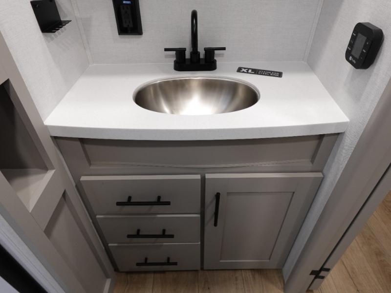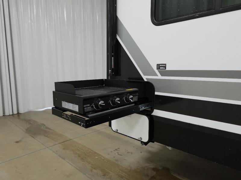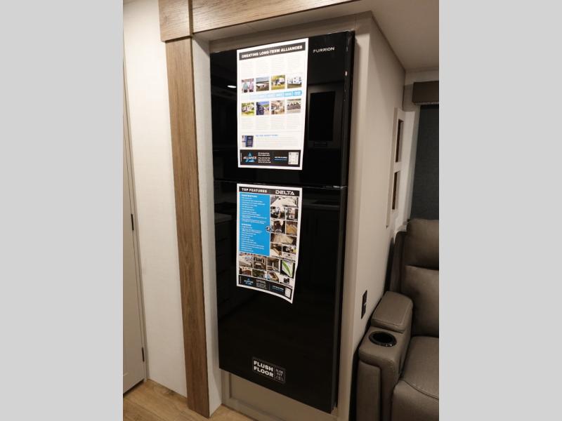 Form and function works together with every one of these Alliance RV Delta travel trailers! They are built with a walk-on roof with a seamless PVC roof covering, Mylar reinforced exterior seals, and a heated and enclosed underbelly to protect your unit in all seasons. The commercial grade vinyl flooring will be easy to clean and the oversized atrium windows throughout let in plenty of natural sunlight. With 62 cu. ft. of drop frame pass-through storage, you can bring along all of your essential camping gear plus it has USB charging for more convenience. There are many at home interior conveniences including a Bluetooth speaker, USB charging throughout, and even a pull-out kitchen trash can. Come find your favorite model today!