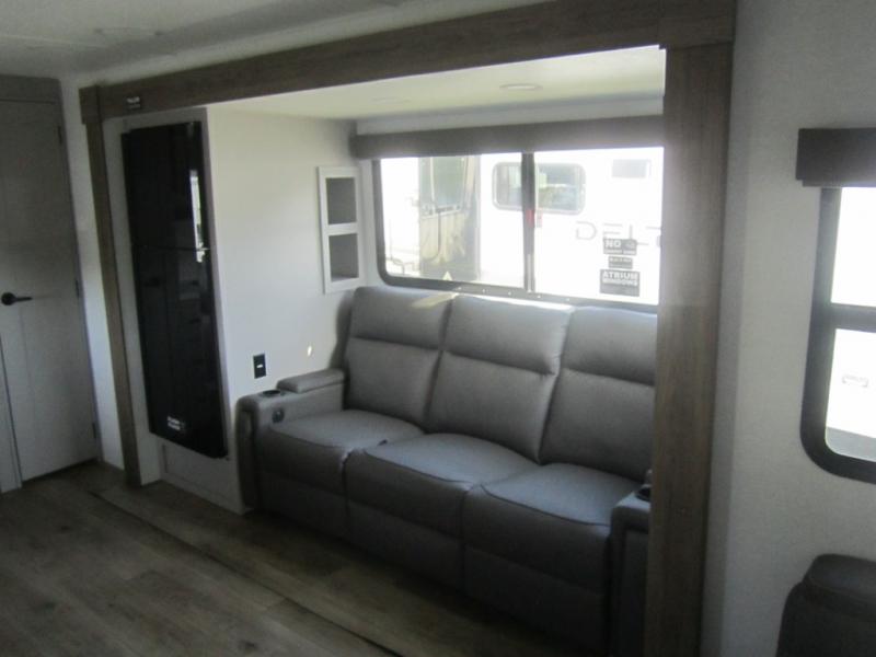 Form and function work together with every one of these Alliance RV Delta travel trailers! They are built with a walk-on roof with a seamless PVC roof covering, Mylar reinforced exterior seals, and a heated and enclosed underbelly to protect your unit. The commercial grade vinyl flooring will be easy to clean, and the oversized atrium windows throughout let in plenty of natural sunlight. With 62 cu. ft. of drop frame pass-through storage, you can bring along all of your essential camping gear plus it has USB charging for more convenience. There are many at home interior conveniences including a Bluetooth speaker, USB charging throughout, and even a pull-out kitchen trash can. Come find your favorite model today!