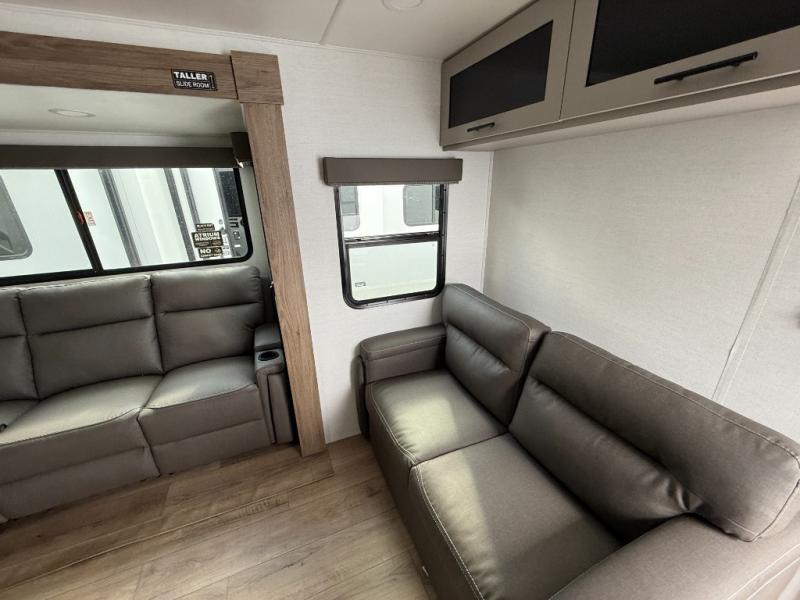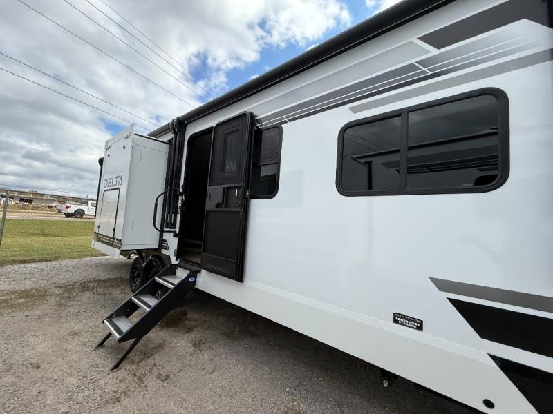 Form and function work together with every one of these Alliance RV Delta travel trailers! They are built with a walk-on roof with a seamless PVC roof covering, Mylar reinforced exterior seals, and a heated and enclosed underbelly to protect your unit. The commercial grade vinyl flooring will be easy to clean, and the oversized atrium windows throughout let in plenty of natural sunlight. With 62 cu. ft. of drop frame pass-through storage, you can bring along all of your essential camping gear plus it has USB charging for more convenience. There are many at home interior conveniences including a Bluetooth speaker, USB charging throughout, and even a pull-out kitchen trash can. Come find your favorite model today!