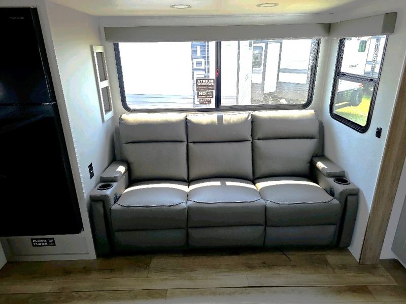 Form and function works together with every one of these Alliance RV Delta travel trailers! They are built with a walk-on roof with a seamless PVC roof covering, Mylar reinforced exterior seals, and a heated and enclosed underbelly to protect your unit in all seasons. The commercial grade vinyl flooring will be easy to clean and the oversized atrium windows throughout let in plenty of natural sunlight. With 62 cu. ft. of drop frame pass-through storage, you can bring along all of your essential camping gear plus it has USB charging for more convenience. There are many at home interior conveniences including a Bluetooth speaker, USB charging throughout, and even a pull-out kitchen trash can. Come find your favorite model today!
