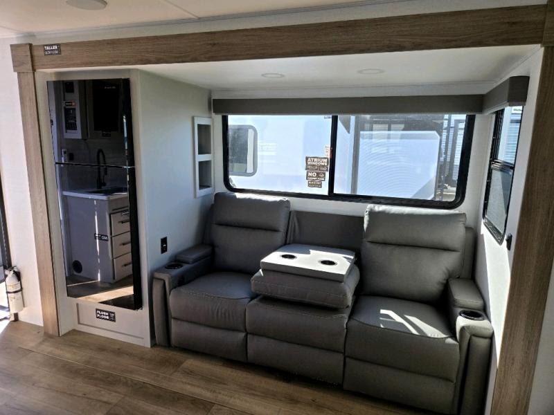 Form and function works together with every one of these Alliance RV Delta travel trailers! They are built with a walk-on roof with a seamless PVC roof covering, Mylar reinforced exterior seals, and a heated and enclosed underbelly to protect your unit in all seasons. The commercial grade vinyl flooring will be easy to clean and the oversized atrium windows throughout let in plenty of natural sunlight. With 62 cu. ft. of drop frame pass-through storage, you can bring along all of your essential camping gear plus it has USB charging for more convenience. There are many at home interior conveniences including a Bluetooth speaker, USB charging throughout, and even a pull-out kitchen trash can. Come find your favorite model today!