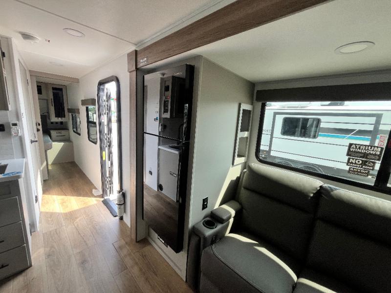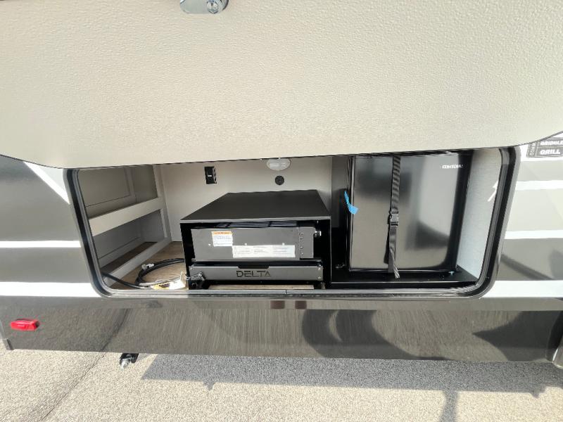 Form and function works together with every one of these Alliance RV Delta travel trailers! They are built with a walk-on roof with a seamless PVC roof covering, Mylar reinforced exterior seals, and a heated and enclosed underbelly to protect your unit in all seasons. The commercial grade vinyl flooring will be easy to clean and the oversized atrium windows throughout let in plenty of natural sunlight. With 62 cu. ft. of drop frame pass-through storage, you can bring along all of your essential camping gear plus it has USB charging for more convenience. There are many at home interior conveniences including a Bluetooth speaker, USB charging throughout, and even a pull-out kitchen trash can. Come find your favorite model today!