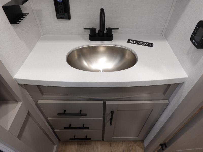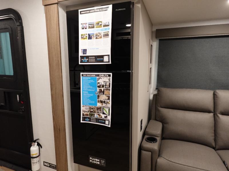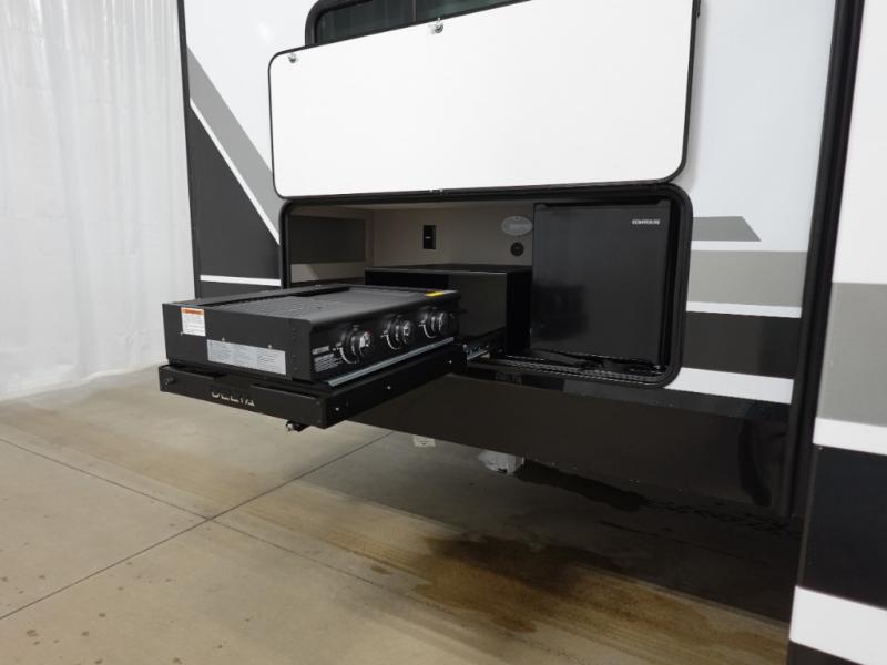 Form and function works together with every one of these Alliance RV Delta travel trailers! They are built with a walk-on roof with a seamless PVC roof covering, Mylar reinforced exterior seals, and a heated and enclosed underbelly to protect your unit in all seasons. The commercial grade vinyl flooring will be easy to clean and the oversized atrium windows throughout let in plenty of natural sunlight. With 62 cu. ft. of drop frame pass-through storage, you can bring along all of your essential camping gear plus it has USB charging for more convenience. There are many at home interior conveniences including a Bluetooth speaker, USB charging throughout, and even a pull-out kitchen trash can. Come find your favorite model today!