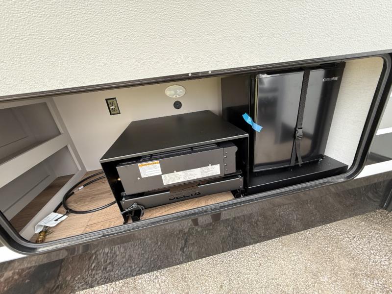 Form and function works together with every one of these Alliance RV Delta travel trailers! They are built with a walk-on roof with a seamless PVC roof covering, Mylar reinforced exterior seals, and a heated and enclosed underbelly to protect your unit in all seasons. The commercial grade vinyl flooring will be easy to clean and the oversized atrium windows throughout let in plenty of natural sunlight. With 62 cu. ft. of drop frame pass-through storage, you can bring along all of your essential camping gear plus it has USB charging for more convenience. There are many at home interior conveniences including a Bluetooth speaker, USB charging throughout, and even a pull-out kitchen trash can. Come find your favorite model today!