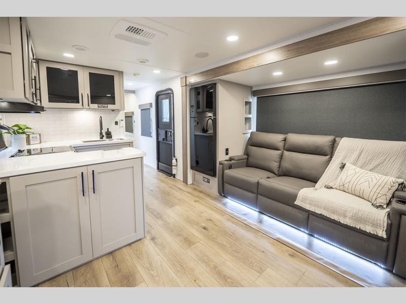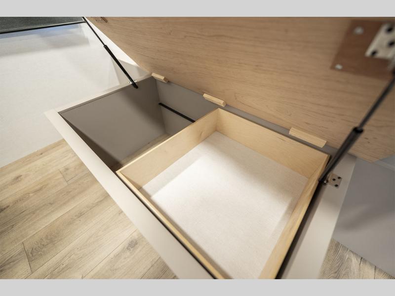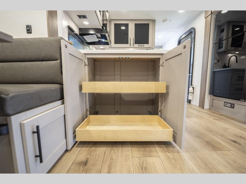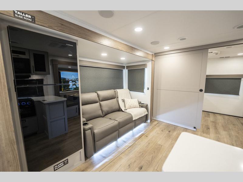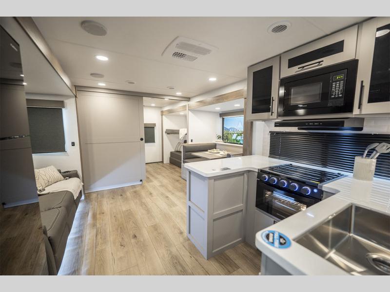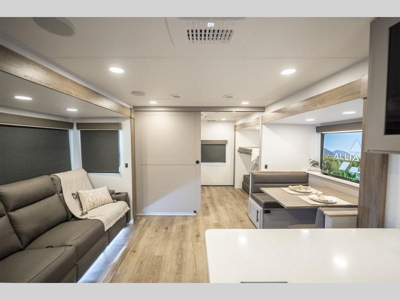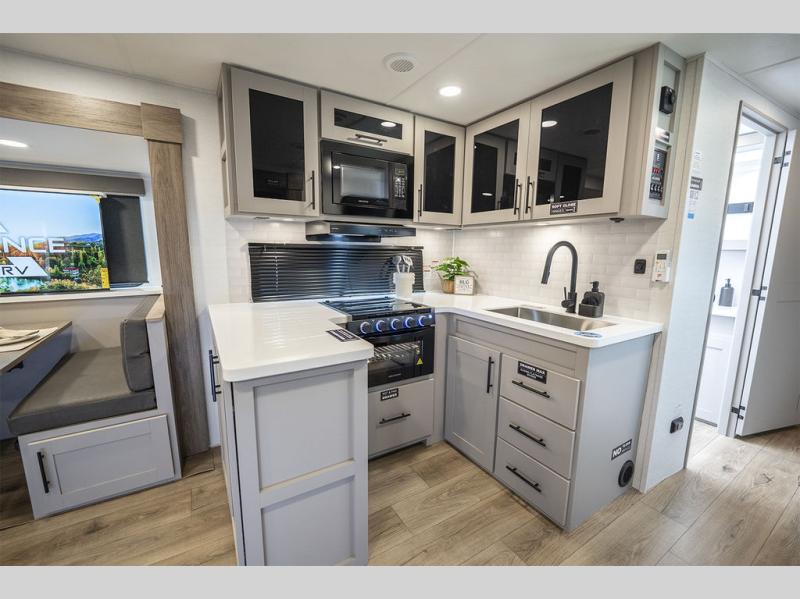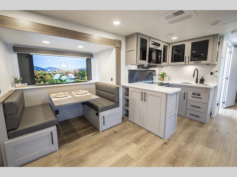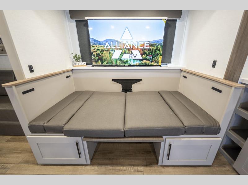 Form and function work together with every one of these Alliance RV Delta travel trailers! They are built with a walk-on roof with a seamless PVC roof covering, Mylar reinforced exterior seals, and a heated and enclosed underbelly to protect your unit. The commercial grade vinyl flooring will be easy to clean, and the oversized atrium windows throughout let in plenty of natural sunlight. With 62 cu. ft. of drop frame pass-through storage, you can bring along all of your essential camping gear plus it has USB charging for more convenience. There are many at home interior conveniences including a Bluetooth speaker, USB charging throughout, and even a pull-out kitchen trash can. Come find your favorite model today!