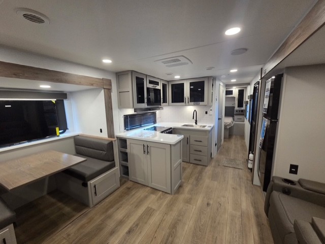 Form and function work together with every one of these Alliance RV Delta travel trailers! They are built with a walk-on roof with a seamless PVC roof covering, Mylar reinforced exterior seals, and a heated and enclosed underbelly to protect your unit. The commercial grade vinyl flooring will be easy to clean, and the oversized atrium windows throughout let in plenty of natural sunlight. With 62 cu. ft. of drop frame pass-through storage, you can bring along all of your essential camping gear plus it has USB charging for more convenience. There are many at home interior conveniences including a Bluetooth speaker, USB charging throughout, and even a pull-out kitchen trash can. Come find your favorite model today!