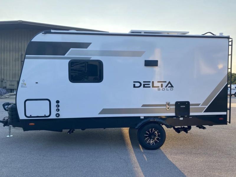 Each Delta Solo Model Each is designed to provide both comfort and convenience in a compact footprint. Inside, you'll find residential-style touches like can-style LED ceiling lights, cabinet doors with magnetic catches, and commercial-grade vinyl flooring built to last. On the exterior, practical travel features include exterior switches for the slide-out and awning, sturdy Step Above fold-out entry steps, and color-coded, numbered wiring for simplified maintenance and troubleshooting.