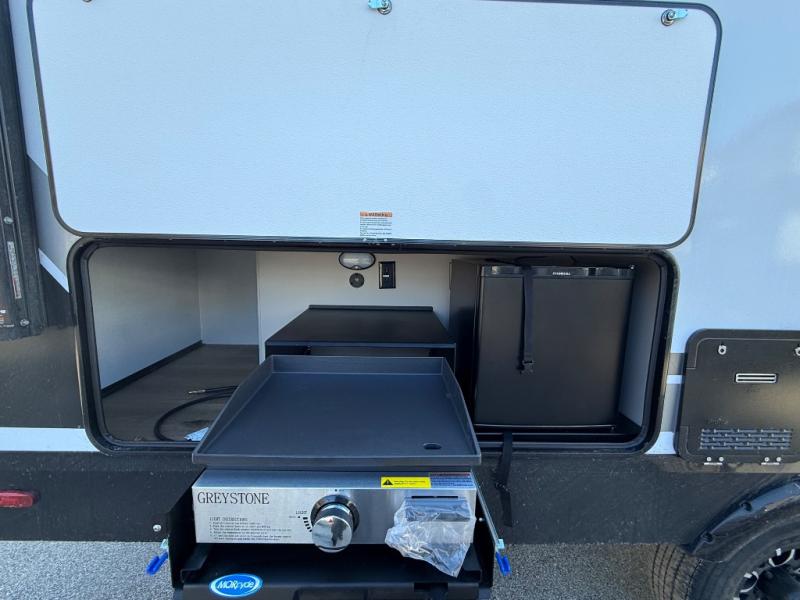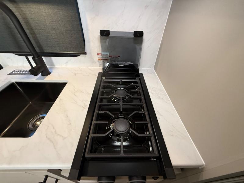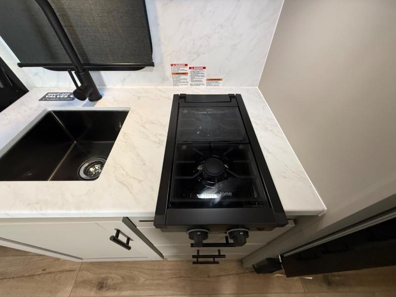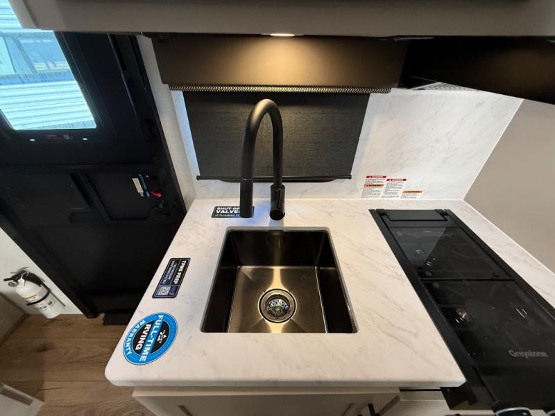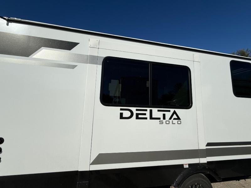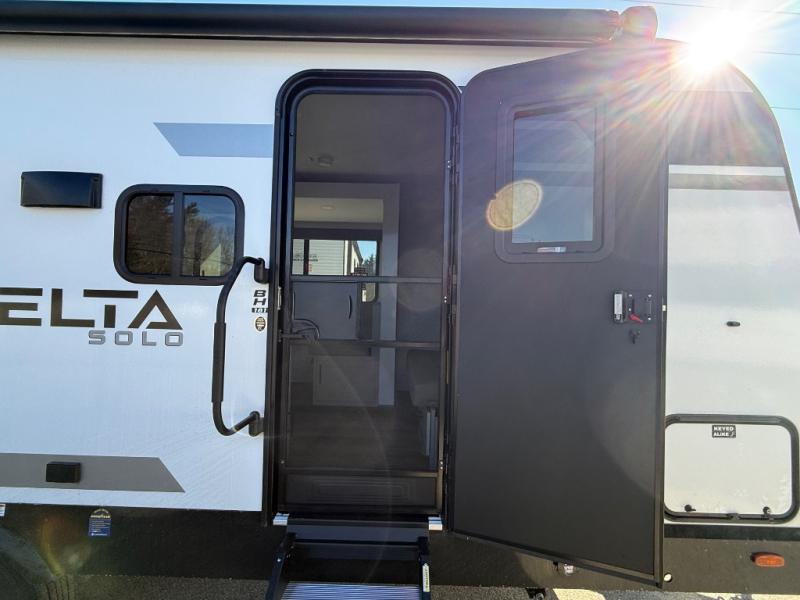 Each Delta Solo Model Each is designed to provide both comfort and convenience in a compact footprint. Inside, you'll find residential-style touches like can-style LED ceiling lights, cabinet doors with magnetic catches, and commercial-grade vinyl flooring built to last. On the exterior, practical travel features include exterior switches for the slide-out and awning, sturdy Step Above fold-out entry steps, and color-coded, numbered wiring for simplified maintenance and troubleshooting.