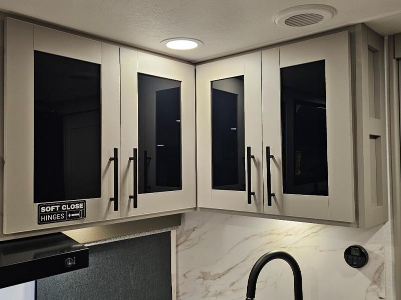 Magnetic cabinet catches and can-style LED lighting throughout for a clean, modern aesthetic.
