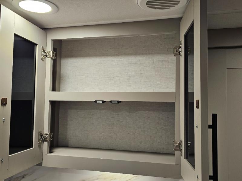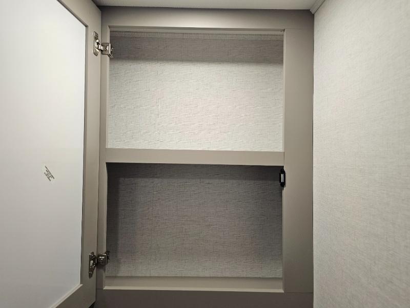 Extra overhead storage for towels and personal items.