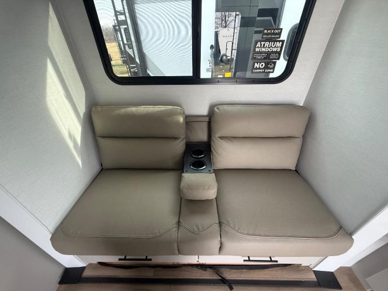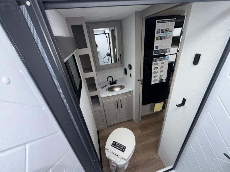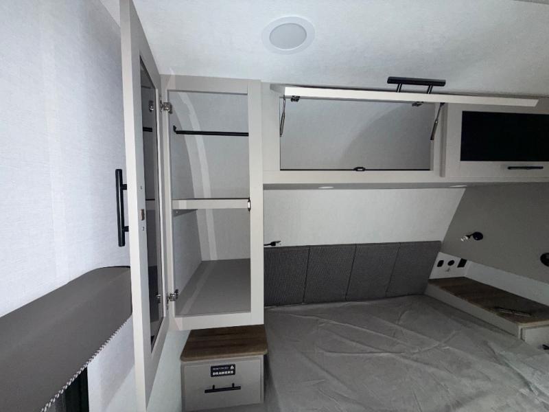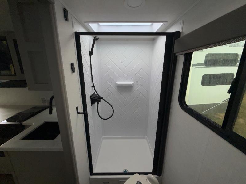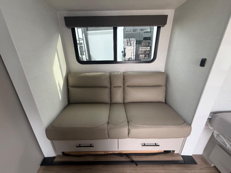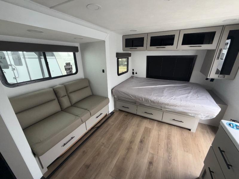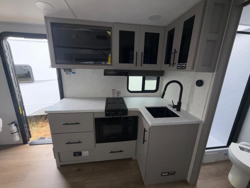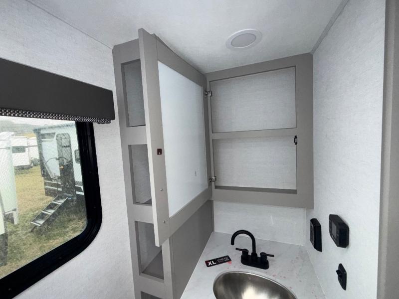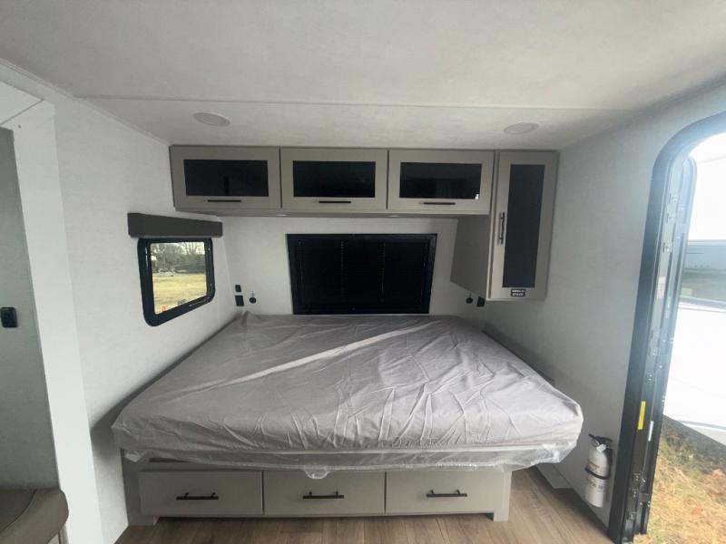 Enter this thoughtfully designed trailer through the 28" entry and step into a space that blends comfort and functionality. At the front, a 60" x 80" queen bed offers restful sleep, complete with a wardrobe at the foot and overhead storage. The center features an L-shaped kitchen equipped with a sink, 2-burner cooktop, overhead cabinets, and a 32-inch TV, while directly across, a 10-cu. ft. refrigerator and a slide out with a 60" jackknife sofa maximize space and convenience. At the rear, enjoy a full bathroom with a 30" x 36" shower, toilet, sink, linen shelves, and additional overhead storage making this compact trailer feel like home wherever you go.