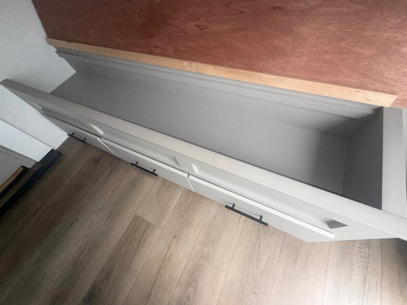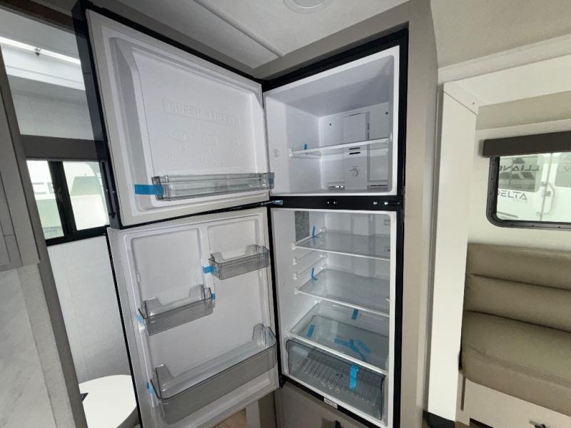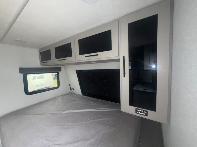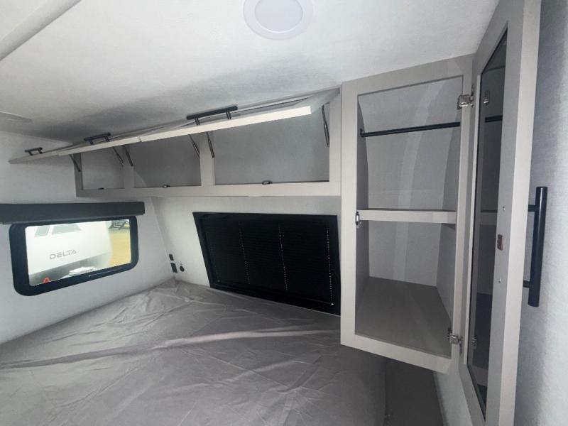 Each Delta Solo model is designed to deliver both comfort and convenience in a compact footprint. Inside, you'll find residential-style touches like can-style LED ceiling lights, durable cabinet doors with magnetic catches, and commercial-grade vinyl flooring built to last. On the exterior, practical travel features include easy-access switches for the slide-out and awning, sturdy Step Above fold-out entry steps, and color-coded, numbered wiring for simplified maintenance and troubleshooting.