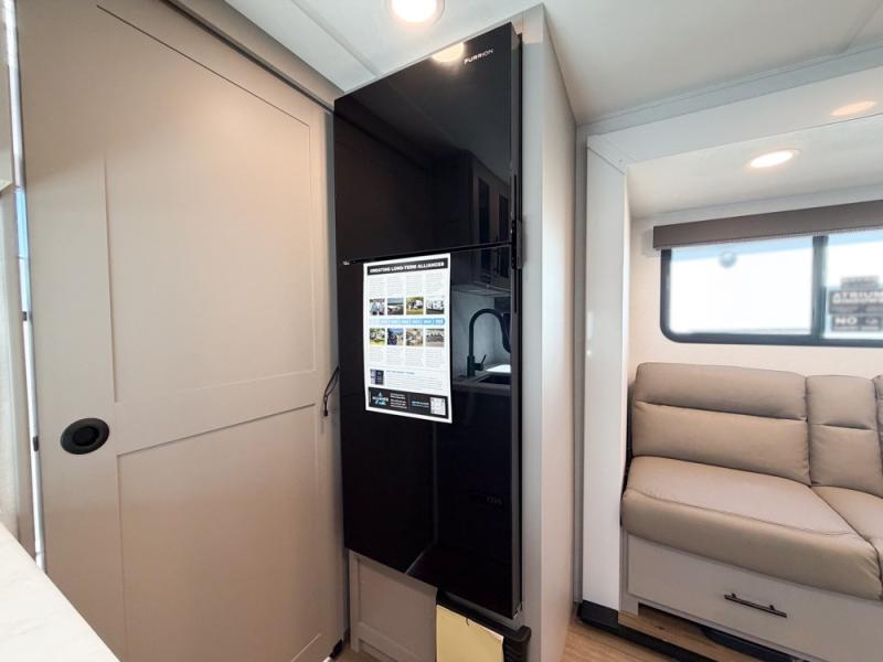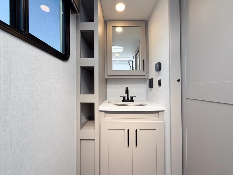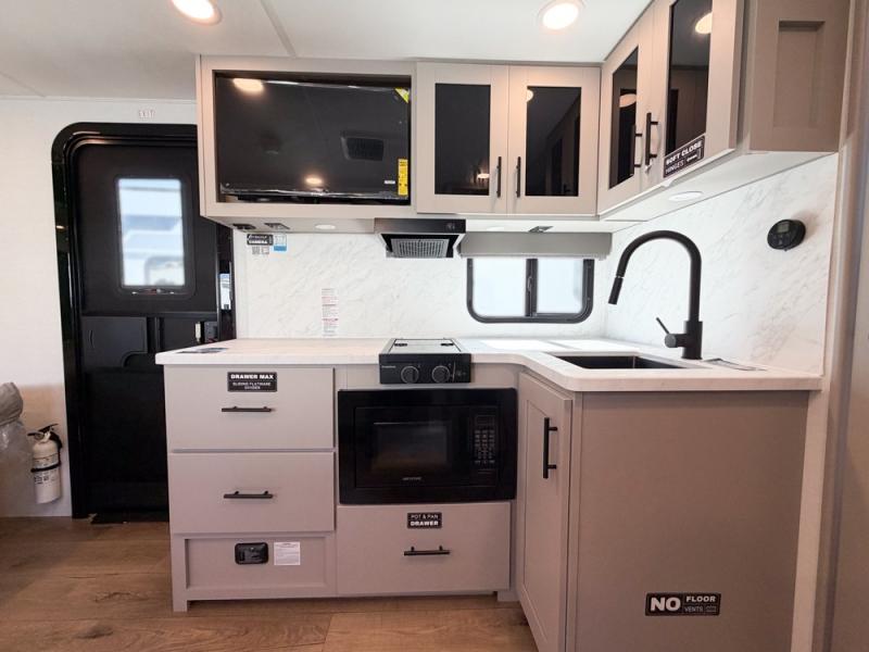 Each Delta Solo model is designed to deliver both comfort and convenience in a compact footprint. Inside, you'll find residential-style touches like can-style LED ceiling lights, durable cabinet doors with magnetic catches, and commercial-grade vinyl flooring built to last. On the exterior, practical travel features include easy-access switches for the slide-out and awning, sturdy Step Above fold-out entry steps, and color-coded, numbered wiring for simplified maintenance and troubleshooting.