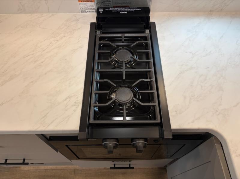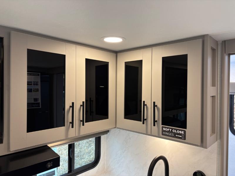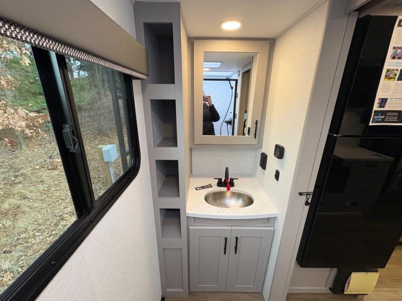 Each Delta Solo model is designed to deliver both comfort and convenience in a compact footprint. Inside, you'll find residential-style touches like can-style LED ceiling lights, durable cabinet doors with magnetic catches, and commercial-grade vinyl flooring built to last. On the exterior, practical travel features include easy-access switches for the slide-out and awning, sturdy Step Above fold-out entry steps, and color-coded, numbered wiring for simplified maintenance and troubleshooting.