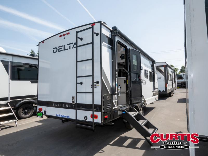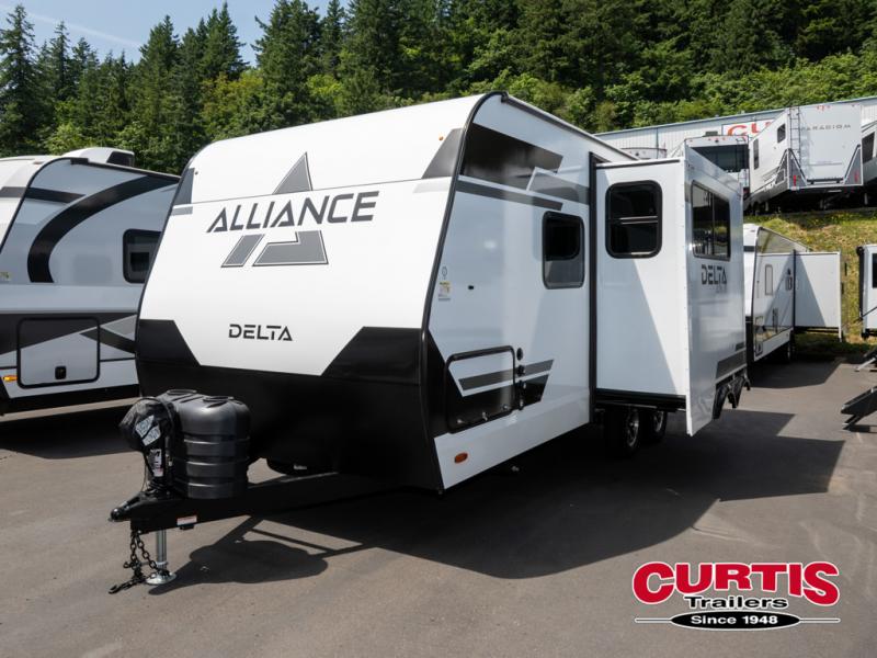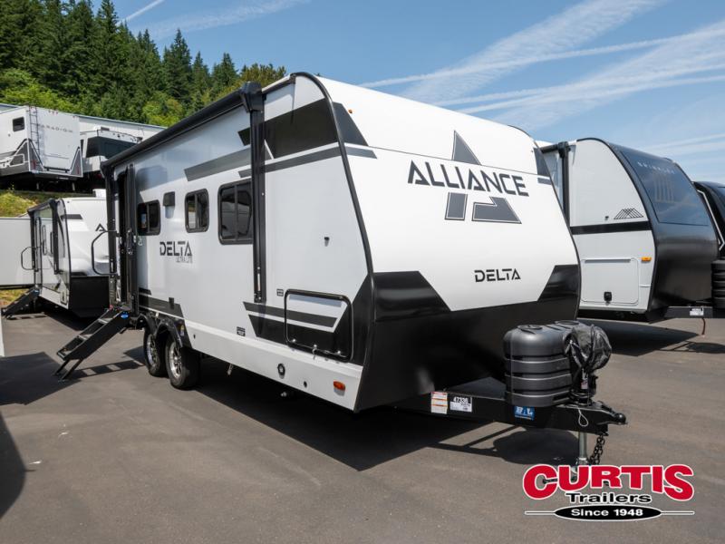 The Delta Ultra Lite travel trailers by Alliance RV are perfect for those looking for a lighter tow weight! The fully functional oversized atrium windows will let more natural light in, and the carpet free interior will be appreciated after a weekend at the lake. There are also magnet catches on all cabinets, soft close cabinet doors, and a kitchen toe kick with LED accent lighting. The exterior includes multiple temperature controlled spray ports, exterior awning controls, and Goodyear Endurance tires. Start a new adventure today in a Delta Ultra Lite travel trailer!