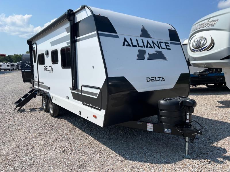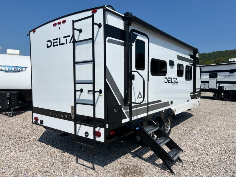 The Delta Ultra Lite travel trailers by Alliance RV are perfect for those looking for a lighter tow weight! The fully functional oversized atrium windows will let more natural light in, and the carpet free interior will be appreciated after a weekend at the lake. There are also magnet catches on all cabinets, soft close cabinet doors, and a kitchen toe kick with LED accent lighting. The exterior includes multiple temperature controlled spray ports, exterior awning controls, and Goodyear Endurance tires. Start a new adventure today in a Delta Ultra Lite travel trailer!
