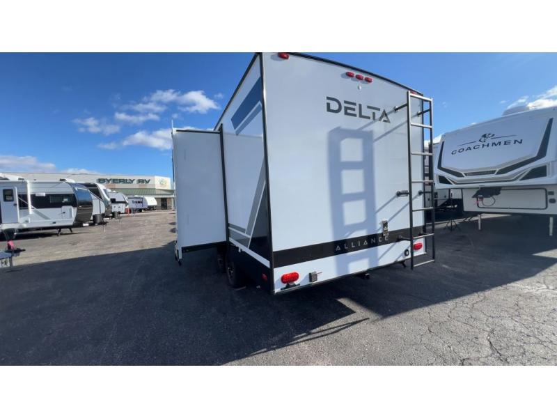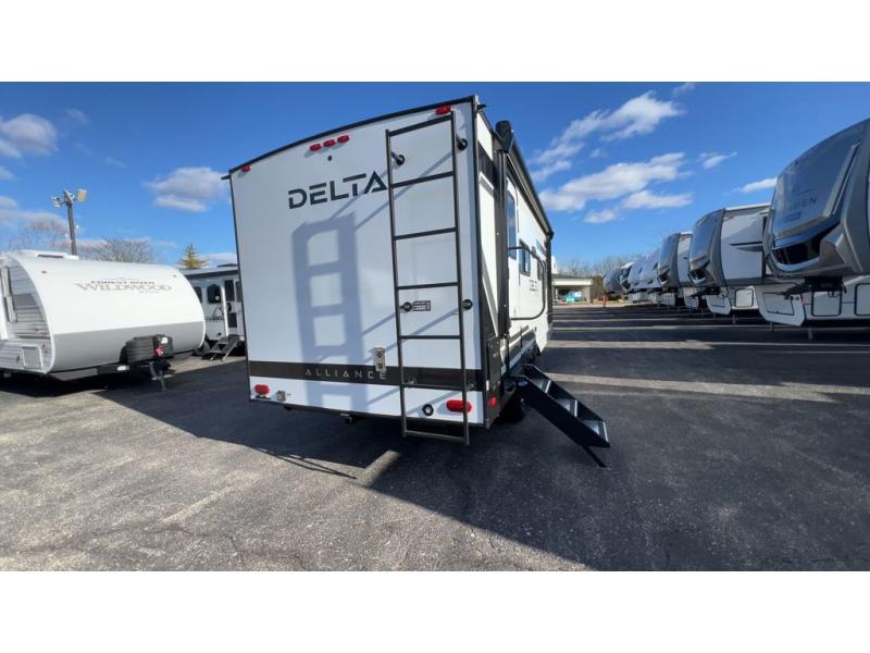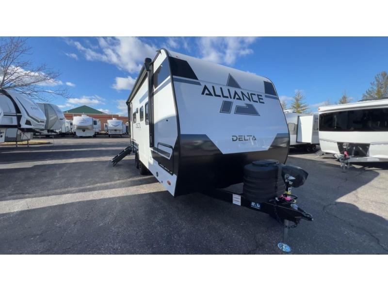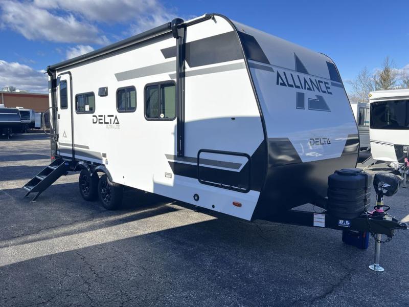 The Delta Ultra Lite travel trailers by Alliance RV are perfect for those looking for a lighter tow weight! The fully functional oversized atrium windows will let more natural light in, and the carpet free interior will be appreciated after a weekend at the lake. There are also magnet catches on all cabinets, soft close cabinet doors, and a kitchen toe kick with LED accent lighting. The exterior includes multiple temperature controlled spray ports, exterior awning controls, and Goodyear Endurance tires. Start a new adventure today in a Delta Ultra Lite travel trailer!