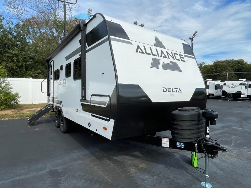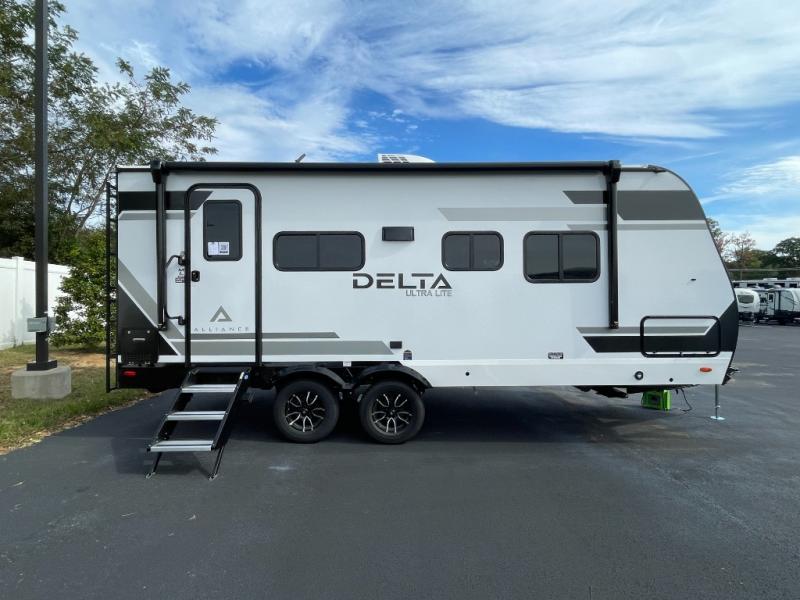 The Delta Ultra Lite travel trailers by Alliance RV are perfect for those looking for a lighter tow weight! The fully functional oversized atrium windows will let more natural light in, and the carpet free interior will be appreciated after a weekend at the lake. There are also magnet catches on all cabinets, soft close cabinet doors, and a kitchen toe kick with LED accent lighting. The exterior includes multiple temperature controlled spray ports, exterior awning controls, and Goodyear Endurance tires. Start a new adventure today in a Delta Ultra Lite travel trailer!