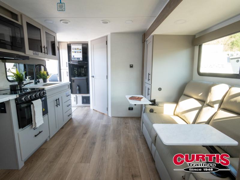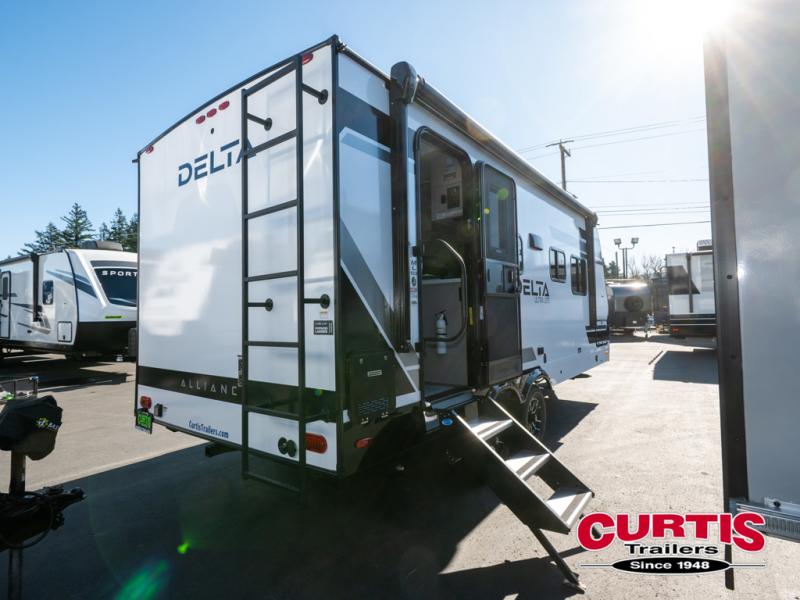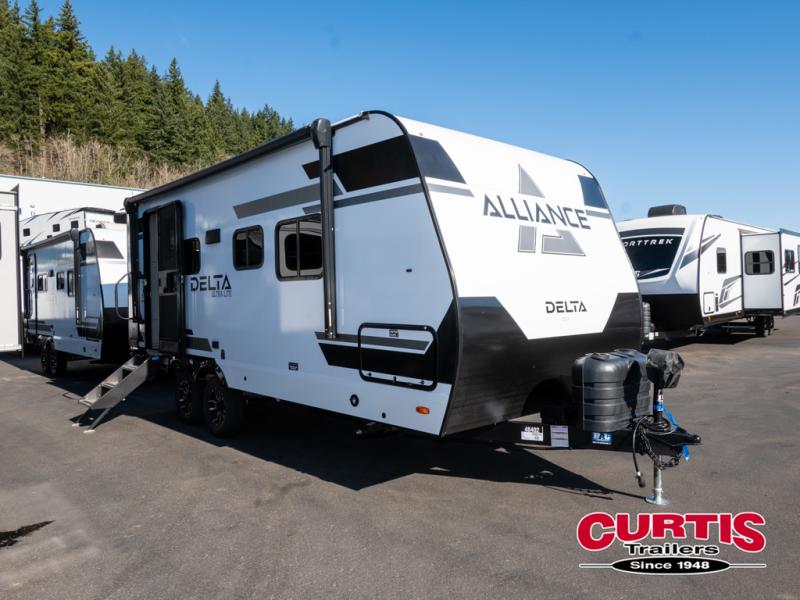 The Delta Ultra Lite travel trailers by Alliance RV are perfect for those looking for a lighter tow weight! The fully functional oversized atrium windows will let more natural light in, and the carpet free interior will be appreciated after a weekend at the lake. There are also magnet catches on all cabinets, soft close hidden hinges, and residential can style LED ceiling lights. The exterior includes multiple location hot/cold spray ports, exterior switches for awning controls, and Goodyear Endurance tires. Start a new adventure today in a Delta Ultra Lite travel trailer!