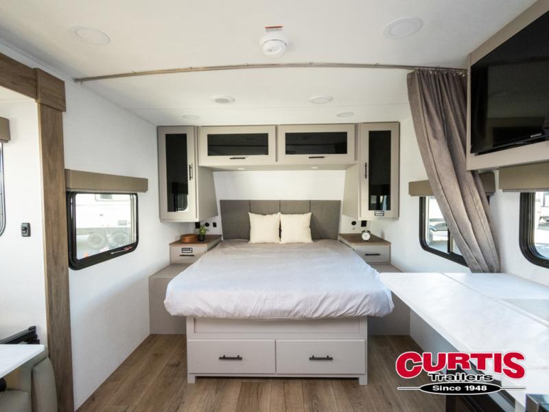- Front Queen Bed with Privacy Curtain
