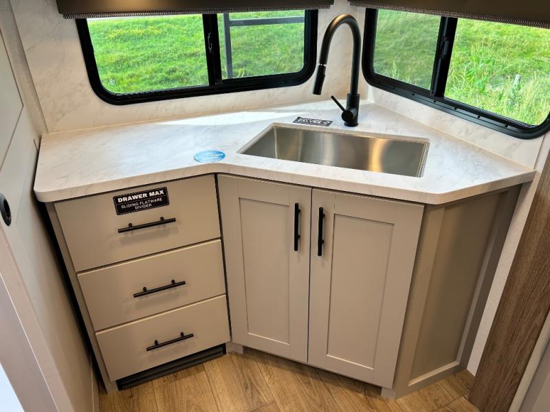 The Delta Ultra Lite travel trailers by Alliance RV are perfect for those looking for a lighter tow weight! The fully functional oversized atrium windows will let more natural light in, and the carpet free interior will be appreciated after a weekend at the lake. There are also magnet catches on all cabinets, soft close cabinet doors, and a kitchen toe kick with LED accent lighting. The exterior includes multiple temperature controlled spray ports, exterior awning controls, and Goodyear Endurance tires. Start a new adventure today in a Delta Ultra Lite travel trailer!
