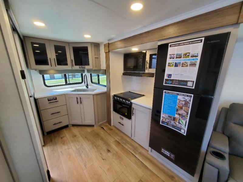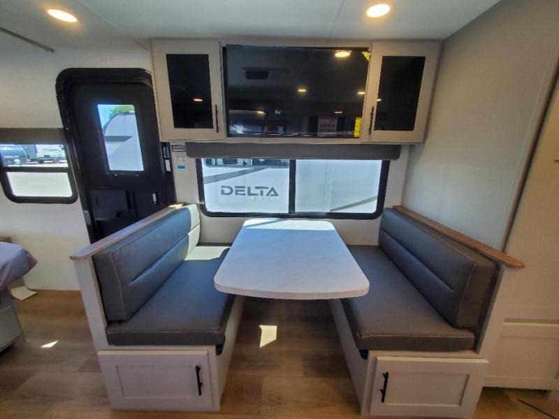 The Delta Ultra Lite travel trailers by Alliance RV are perfect for those looking for a lighter tow weight! The fully functional oversized atrium windows will let more natural light in, and the carpet free interior will be appreciated after a weekend at the lake. There are also magnet catches on all cabinets, soft close cabinet doors, and a kitchen toe kick with LED accent lighting. The exterior includes multiple temperature controlled spray ports, exterior awning controls, and Goodyear Endurance tires. Start a new adventure today in a Delta Ultra Lite travel trailer!
