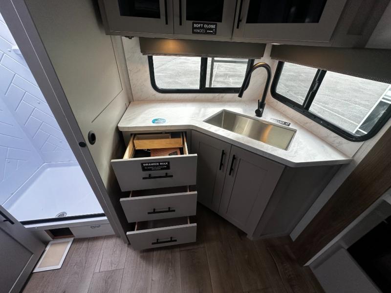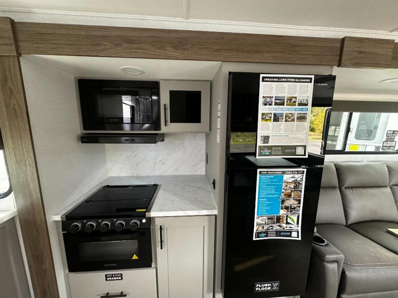 The Delta Ultra Lite travel trailers by Alliance RV are perfect for those looking for a lighter tow weight! The fully functional oversized atrium windows will let more natural light in, and the carpet free interior will be appreciated after a weekend at the lake. There are also magnet catches on all cabinets, soft close cabinet doors, and a kitchen toe kick with LED accent lighting. The exterior includes multiple temperature controlled spray ports, exterior awning controls, and Goodyear Endurance tires. Start a new adventure today in a Delta Ultra Lite travel trailer!
