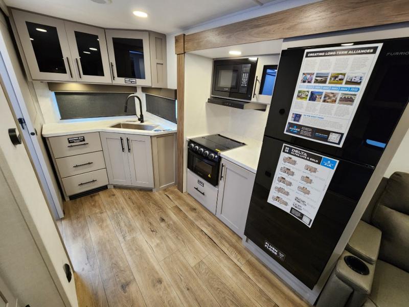 The Delta Ultra Lite travel trailers by Alliance RV are perfect for those looking for a lighter tow weight! The fully functional oversized atrium windows will let more natural light in, and the carpet free interior will be appreciated after a weekend at the lake. There are also magnet catches on all cabinets, soft close cabinet doors, and a kitchen toe kick with LED accent lighting. The exterior includes multiple temperature controlled spray ports, exterior awning controls, and Goodyear Endurance tires. Start a new adventure today in a Delta Ultra Lite travel trailer!