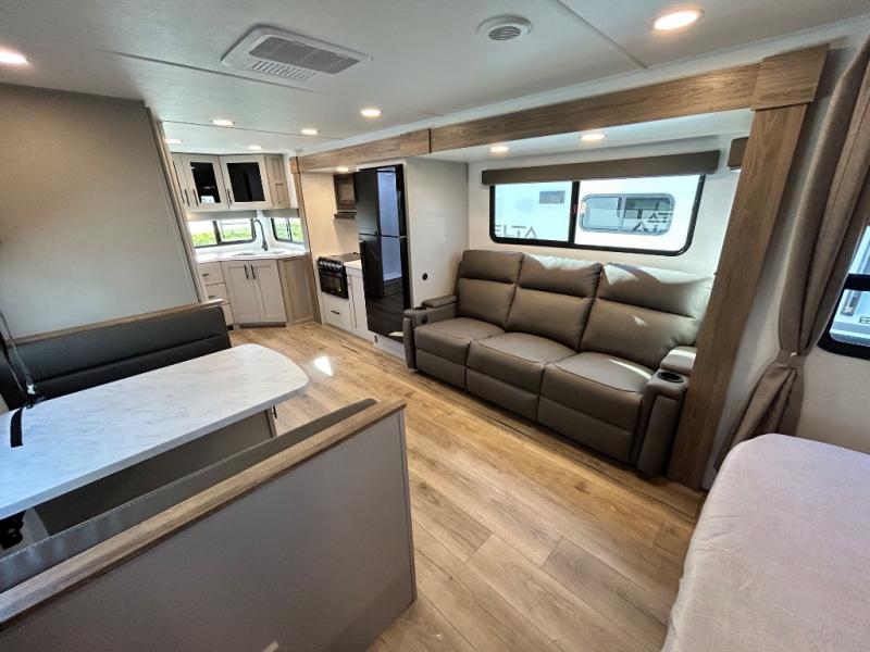 The Delta Ultra Lite travel trailers by Alliance RV are perfect for those looking for a lighter tow weight! The fully functional oversized atrium windows will let more natural light in, and the carpet free interior will be appreciated after a weekend at the lake. There are also magnet catches on all cabinets, soft close cabinet doors, and a kitchen toe kick with LED accent lighting. The exterior includes multiple temperature controlled spray ports, exterior awning controls, and Goodyear Endurance tires. Start a new adventure today in a Delta Ultra Lite travel trailer!