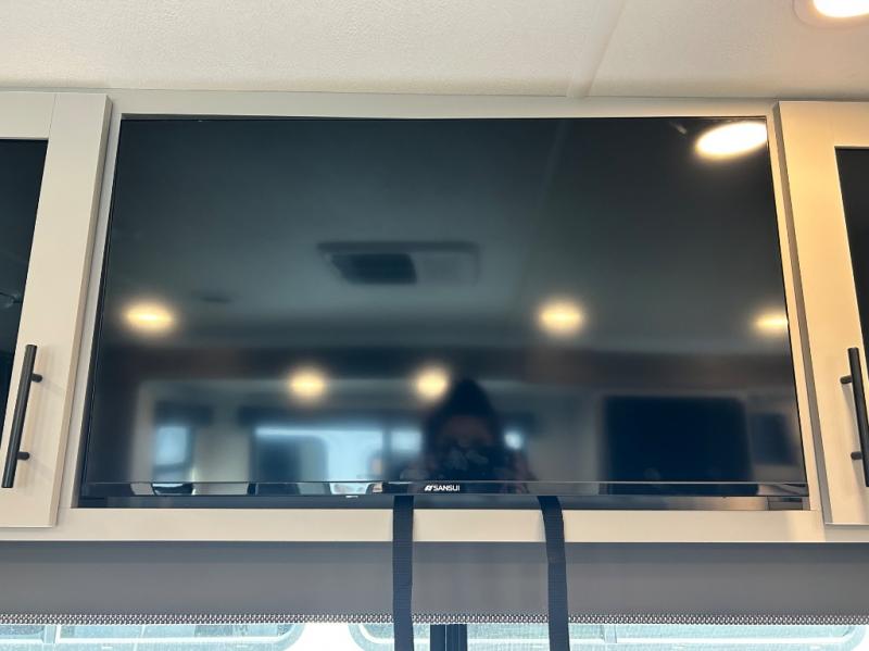 This travel trailer is perfect for three to four happy campers! You'll find a front bedroom with a queen-size bed, dual wardrobes and nightstands, plus a privacy curtain if you have someone staying over on the sofa. The booth dinette provides additional sleeping space when it's not being used to dine or play games at! A rear corner kitchen includes counter space to prep meals, a large sink, plus overhead storage for spices. After dinner, you can relax with a movie since there is a 40" swivel TV, or you can head outdoors to visit under the 19' patio awning!