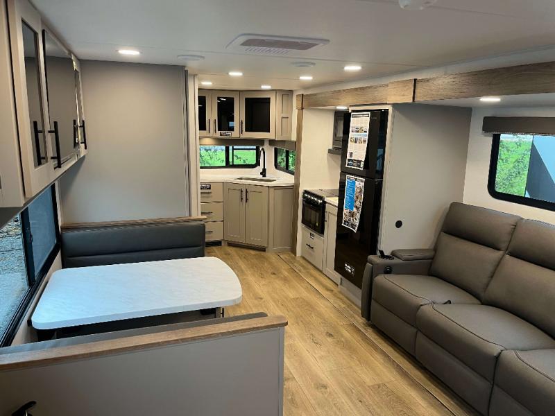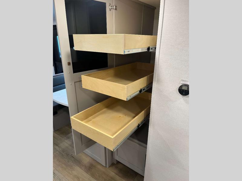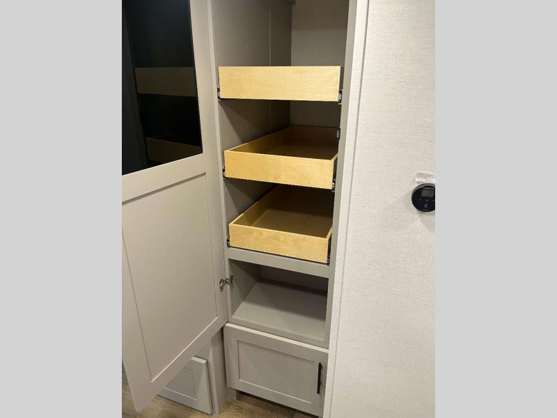 - 42 Cu Ft of Through Storage, Step Above Fold Out Entry Steps, Exterior Switches for Slide Out and Awning Control, Multiple Location Hot/Cold Spray Ports, On-Demand Tankless Water Heater, 60x80 Residential Queen Bed, Full Width Oversized Exterior Ladder w/ built in Towel Rack, USB Charging and Motion Light in Pass Through, Carpet Free Interior, 2“ Accessory Hitch, Easy Access Water Pump for Winterization