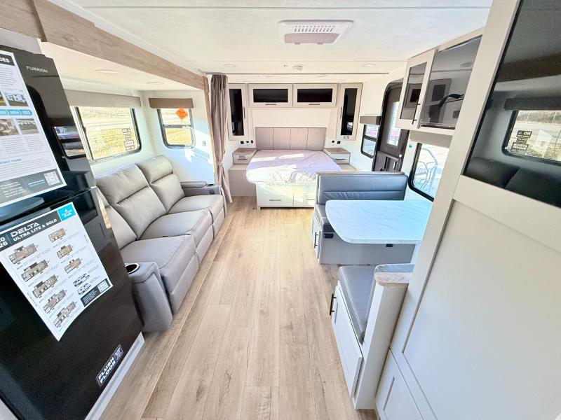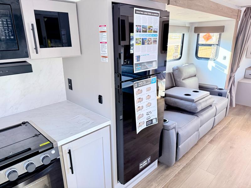 The Delta Ultra Lite travel trailers by Alliance RV are perfect for those looking for a lighter tow weight! The fully functional oversized atrium windows will let more natural light in, and the carpet free interior will be appreciated after a weekend at the lake. There are also magnet catches on all cabinets, soft close cabinet doors, and a kitchen toe kick with LED accent lighting. The exterior includes multiple temperature controlled spray ports, exterior awning controls, and Goodyear Endurance tires. Start a new adventure today in a Delta Ultra Lite travel trailer!