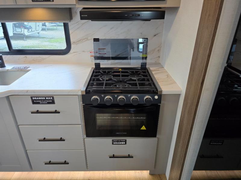 The Delta Ultra Lite travel trailers by Alliance RV are perfect for those looking for a lighter tow weight! The fully functional oversized atrium windows will let more natural light in, and the carpet free interior will be appreciated after a weekend at the lake. There are also magnet catches on all cabinets, soft close cabinet doors, and a kitchen toe kick with LED accent lighting. The exterior includes multiple temperature controlled spray ports, exterior awning controls, and Goodyear Endurance tires. Start a new adventure today in a Delta Ultra Lite travel trailer!