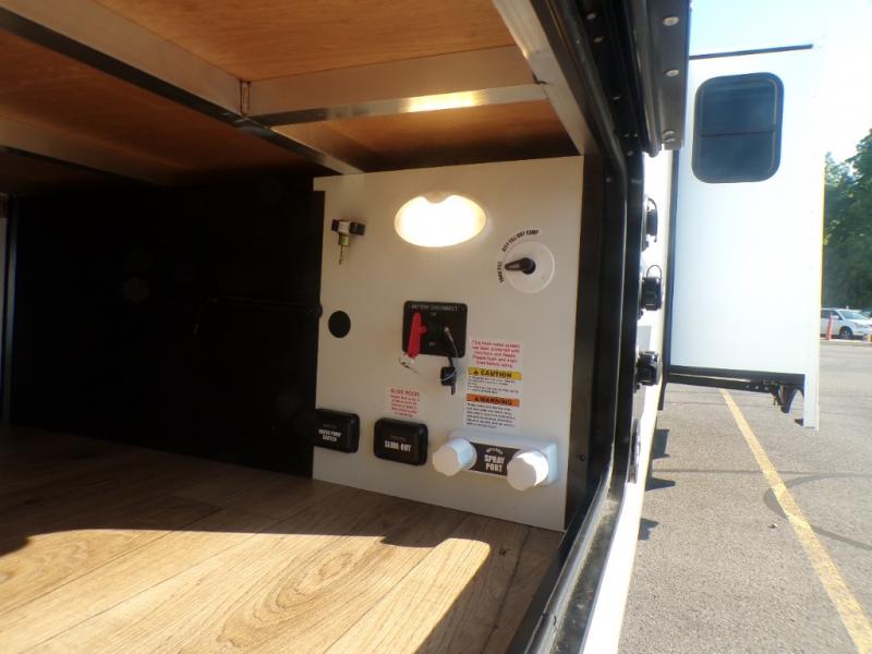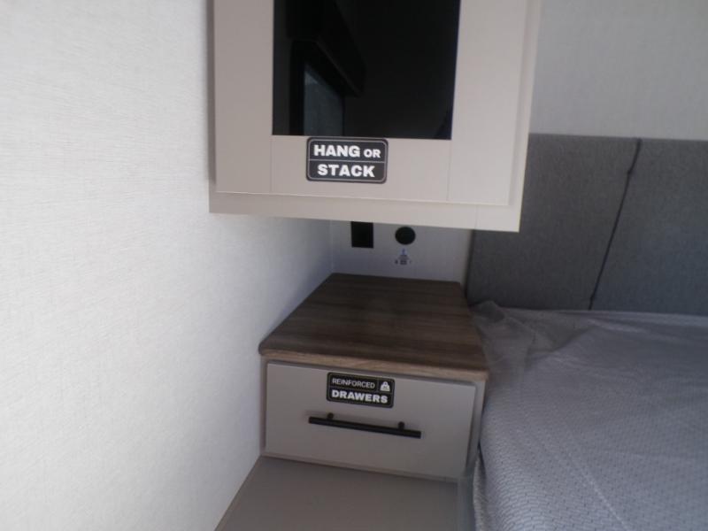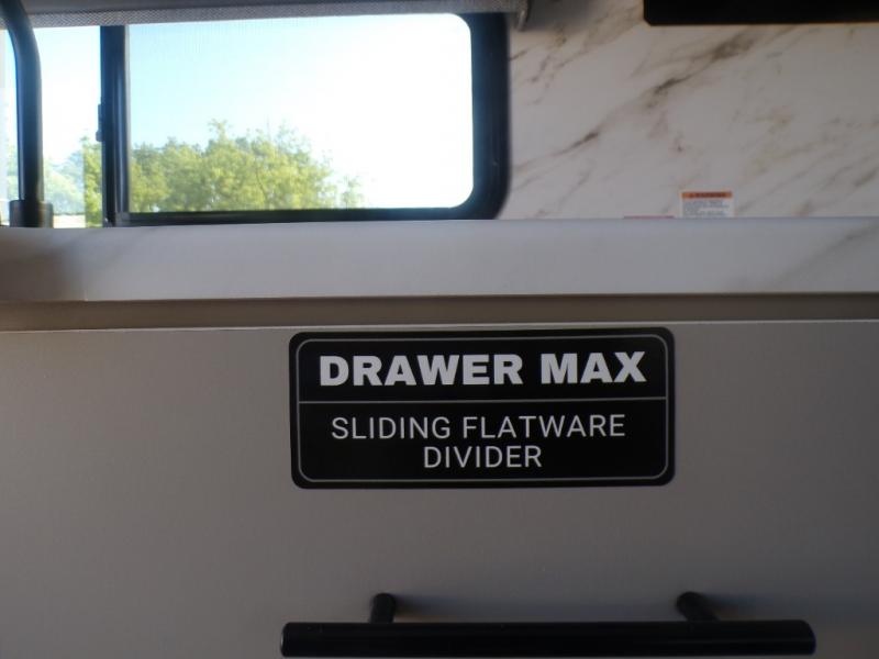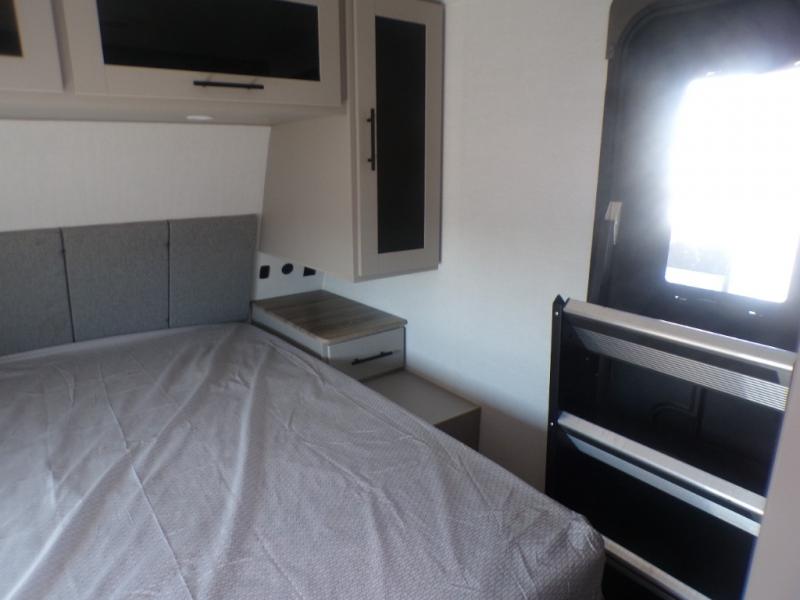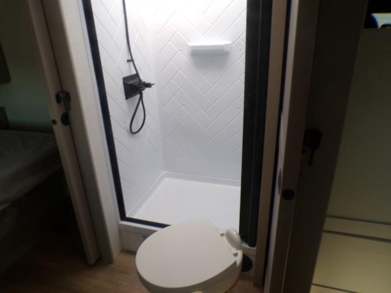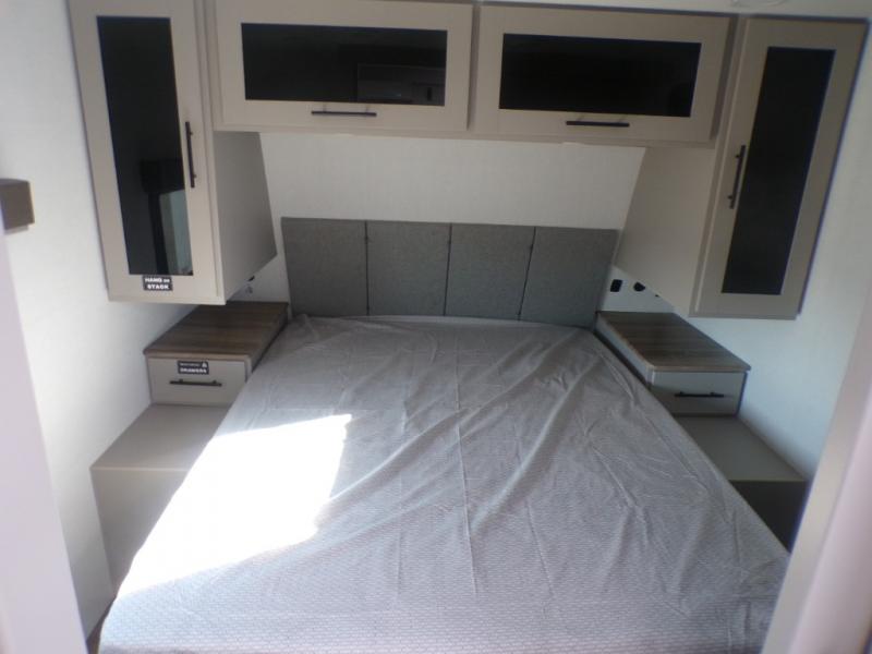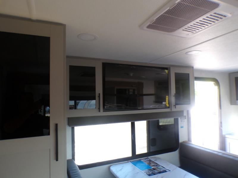 You'll love camping in this rear kitchen travel trailer with generous counter space and overhead storage for spices, dishes, and more. You can dine each day at the booth dinette or relax on the sofa slide out, which will provide more floor space. The spacious walk-thru bath includes a 30" x 36" shower, toilet, and vanity so you can clean up each day. Head to the front master bedroom where you can sleep soundly on the walk-around queen bed with dual nightstands and wardrobes. The second entry door is also found in this room so you can slip out for an early morning run!