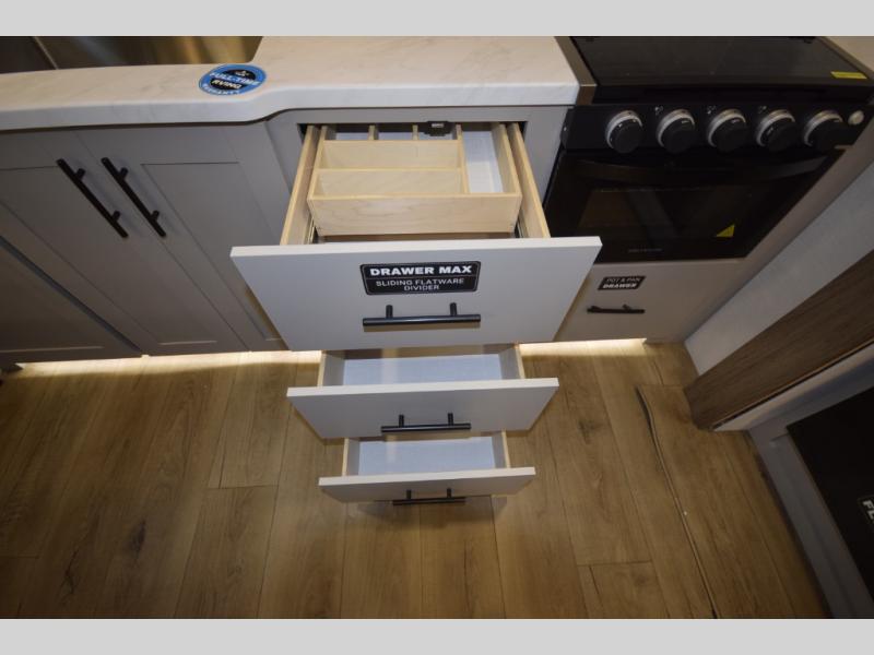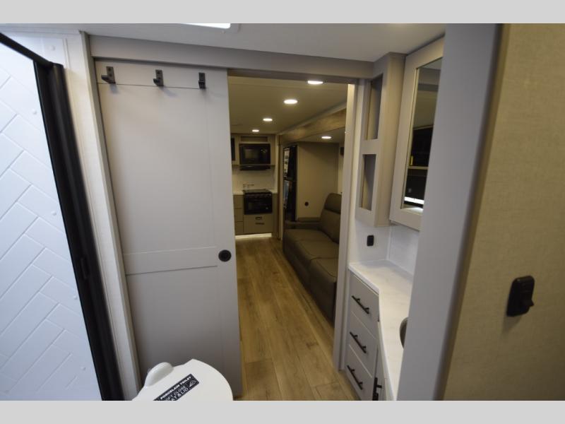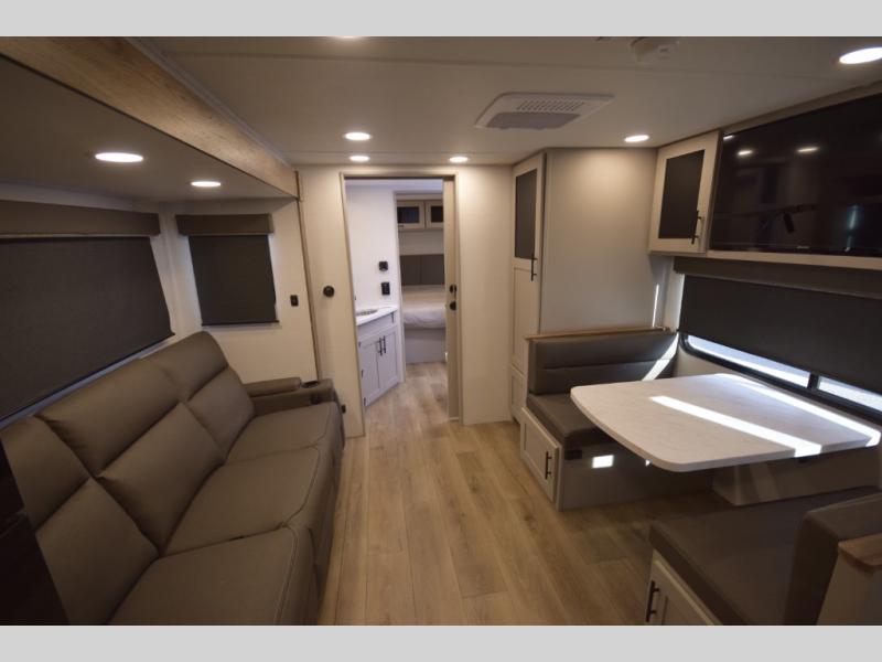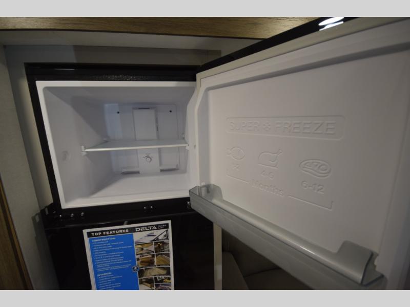 The Delta RK234 is perfect for couples or small families who want to tow light without sacrificing comfort. With a rear kitchen, a spacious walk-thru bath, and smart design throughout, this trailer is your home base for big adventures!