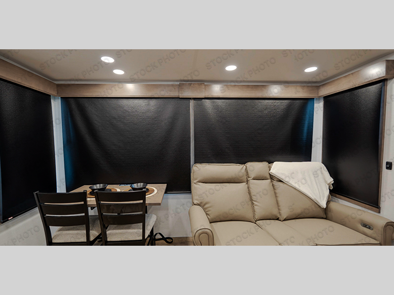 The Paradigm fifth wheels by Alliance RV are functional, high-quality, and luxurious for an unforgettable camping experience. There are three A/C units and a 40K BTU furnace to keep you comfortable year around, and you'll appreciate additional convenient amenities, like the all-in-one enclosed/heated utility center and the color coded and numbered wiring. A Helux Series coil spring pin box comes standard for hassle-free towing, along with Super-G 4,400 lb. rated tires and Dexter 7,000 lb. axles. You'll love the kitchen with its LG solid surface countertops and Lusso range, plus there is LED motion lighting in the pantry and a Maxx fan with a rain sensor to keep everything fresh when making dinner. Each model also includes an HD Smart TV in the living room and bedroom, plus a Winegard Air 360 antenna to keep you connected to the outside world. And of course there are a variety of options you can choose from to further customize your fifth wheel; dual pane windows, Super Solar Plus, slide out awning toppers, and generator prep or a generator to name a few!