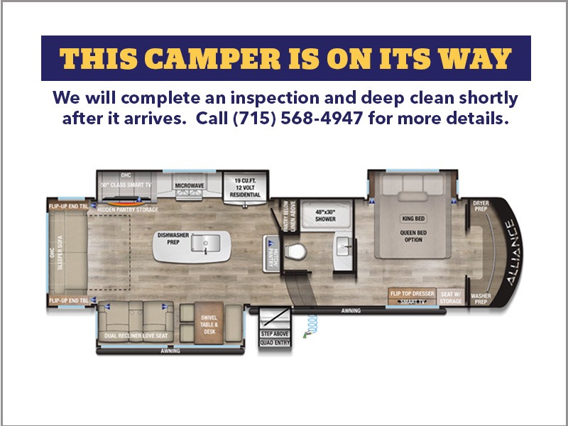 The Paradigm fifth wheels by Alliance RV are functional, high-quality, and luxurious for an unforgettable camping experience. There are three A/C units and a 40K BTU furnace to keep you comfortable year around, and you'll appreciate additional convenient amenities, like the all-in-one enclosed/heated utility center and the color coded and numbered wiring. A Helux Series coil spring pin box comes standard for hassle-free towing, along with Curt 8,000 lb. axles. You'll love the kitchen with its LG solid surface countertops and Lusso range, plus there is LED motion lighting in the pantry and a Maxx fan with a rain sensor to keep everything fresh when making dinner. Each model also includes an HD Smart TV in the living room and bedroom. And of course there are a variety of options you can choose from to further customize your fifth wheel; dual pane windows, Super Solar Plus, slide out awning toppers, and generator prep or a generator to name a few!