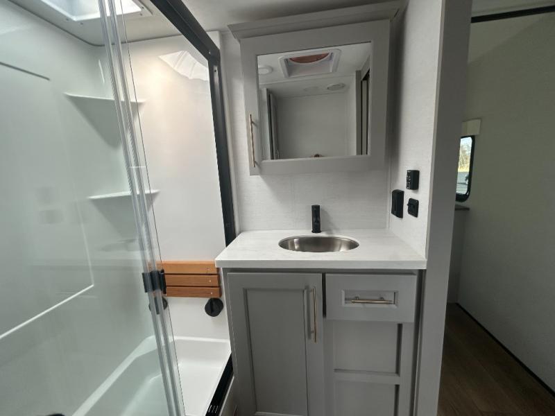 The Paradigm fifth wheels by Alliance RV are functional, high-quality, and luxurious for an unforgettable camping experience. There are three A/C units and a 40K BTU furnace to keep you comfortable year around, and you'll appreciate additional convenient amenities, like the all-in-one enclosed/heated utility center and the color coded and numbered wiring. A Helux Series coil spring pin box comes standard for hassle-free towing, along with Curt 8,000 lb. axles. You'll love the kitchen with its LG solid surface countertops and Lusso range, plus there is LED motion lighting in the pantry and a Maxx fan with a rain sensor to keep everything fresh when making dinner. Each model also includes an HD Smart TV in the living room and bedroom. And of course there are a variety of options you can choose from to further customize your fifth wheel; dual pane windows, Super Solar Plus, slide out awning toppers, and generator prep or a generator to name a few!