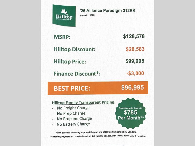 New 2026 Alliance RV Paradigm 312RK Fifth Wheel