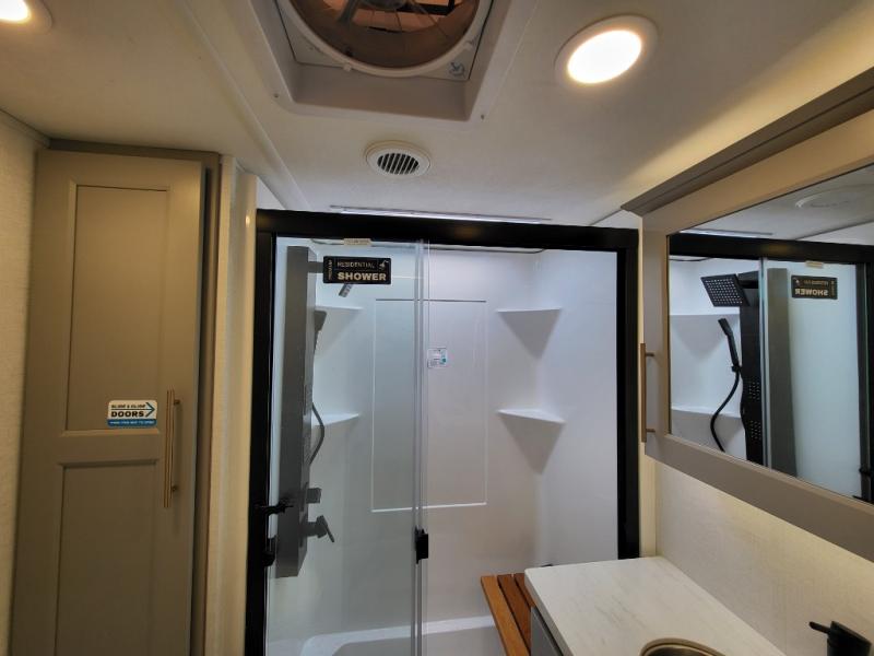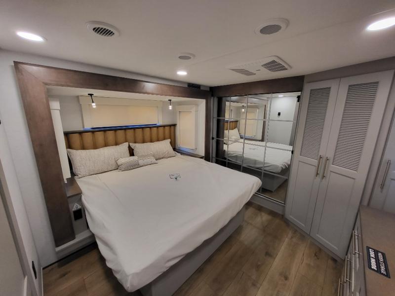 The Paradigm fifth wheels by Alliance RV are functional, high-quality, and luxurious for an unforgettable camping experience. There are three A/C units and a 40K BTU furnace to keep you comfortable year around, and you'll appreciate additional convenient amenities, like the all-in-one enclosed/heated utility center and the color coded and numbered wiring. A Helux Series coil spring pin box comes standard for hassle-free towing, along with Curt 8,000 lb. axles. You'll love the kitchen with its LG solid surface countertops and Lusso range, plus there is LED motion lighting in the pantry and a Maxx fan with a rain sensor to keep everything fresh when making dinner. Each model also includes an HD Smart TV in the living room and bedroom. And of course there are a variety of options you can choose from to further customize your fifth wheel; dual pane windows, Super Solar Plus, slide out awning toppers, and generator prep or a generator to name a few!
