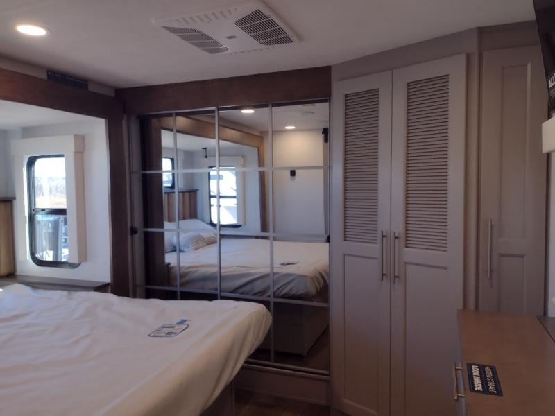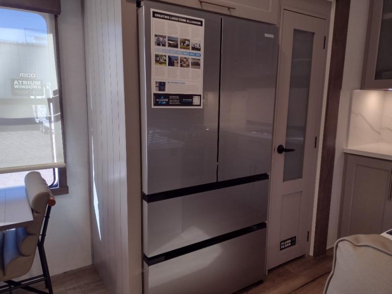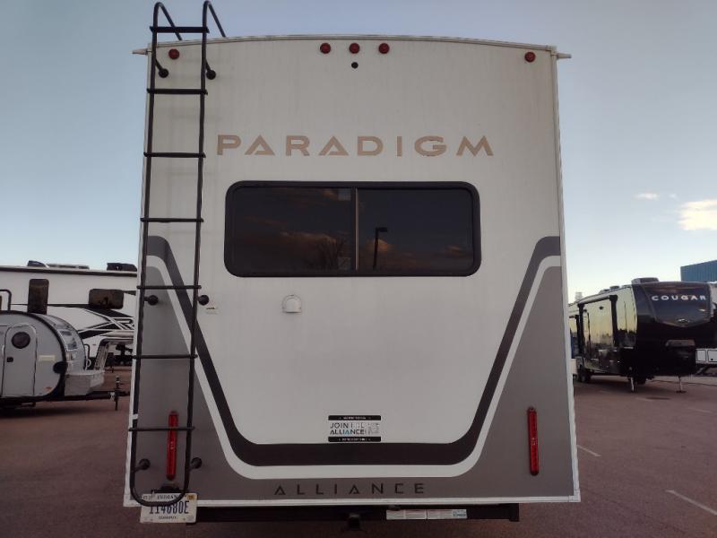 The Paradigm fifth wheels by Alliance RV are functional, high-quality, and luxurious for an unforgettable camping experience. There are three A/C units and a 40K BTU furnace to keep you comfortable year around, and you'll appreciate additional convenient amenities, like the all-in-one enclosed/heated utility center and the color coded and numbered wiring. A Helux Series coil spring pin box comes standard for hassle-free towing, along with Curt 8,000 lb. axles. You'll love the kitchen with its LG solid surface countertops and Lusso range, plus there is LED motion lighting in the pantry and a Maxx fan with a rain sensor to keep everything fresh when making dinner. Each model also includes an HD Smart TV in the living room and bedroom. And of course there are a variety of options you can choose from to further customize your fifth wheel; dual pane windows, Super Solar Plus, slide out awning toppers, and generator prep or a generator to name a few!