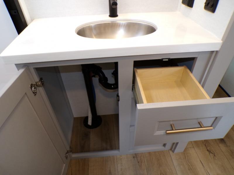 The Paradigm fifth wheels by Alliance RV are functional, high-quality, and luxurious for an unforgettable camping experience. There are three A/C units and a 40K BTU furnace to keep you comfortable year around, and you'll appreciate additional convenient amenities, like the all-in-one enclosed/heated utility center and the color coded and numbered wiring. A Helux Series coil spring pin box comes standard for hassle-free towing, along with Curt 8,000 lb. axles. You'll love the kitchen with its LG solid surface countertops and Lusso range, plus there is LED motion lighting in the pantry and a Maxx fan with a rain sensor to keep everything fresh when making dinner. Each model also includes an HD Smart TV in the living room and bedroom. And of course there are a variety of options you can choose from to further customize your fifth wheel; dual pane windows, Super Solar Plus, slide out awning toppers, and generator prep or a generator to name a few!