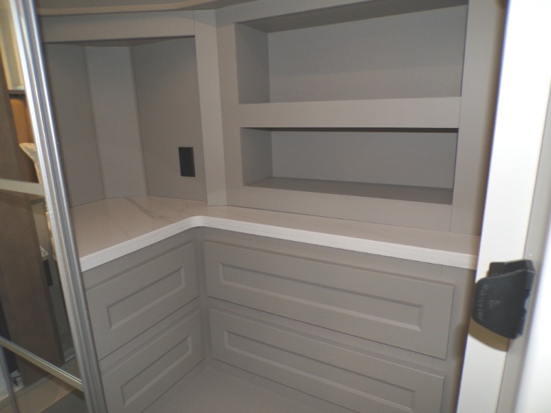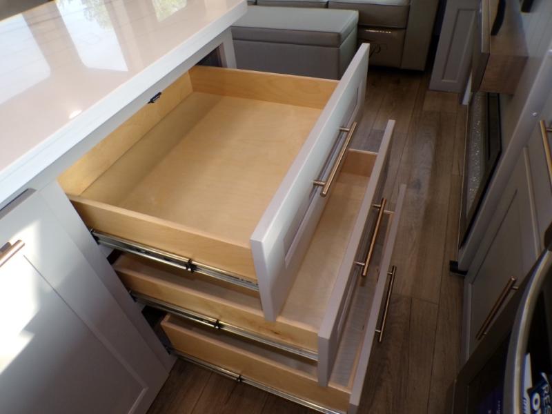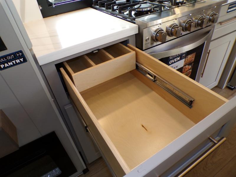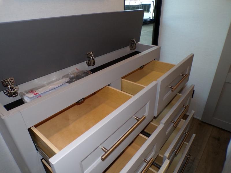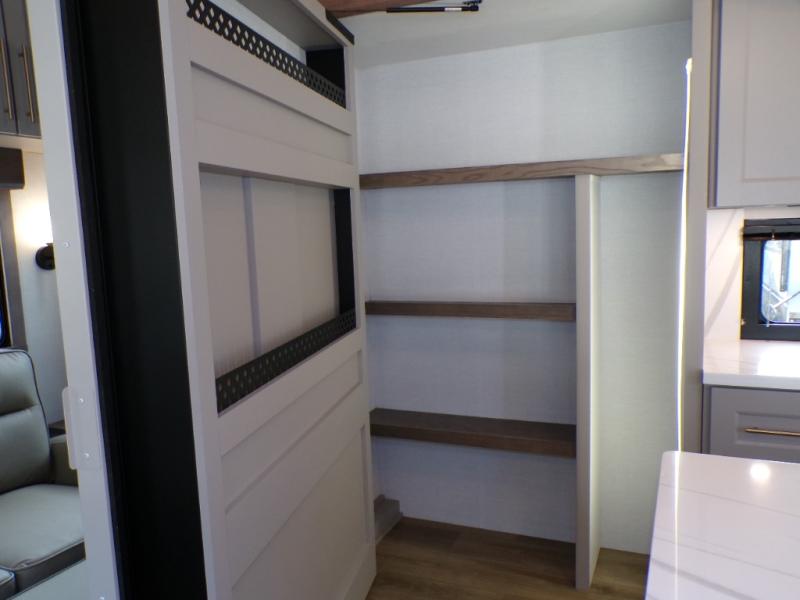 The Paradigm fifth wheels by Alliance RV are functional, high-quality, and luxurious for an unforgettable camping experience. There are three A/C units and a 40K BTU furnace to keep you comfortable year around, and you'll appreciate additional convenient amenities, like the all-in-one enclosed/heated utility center and the color coded and numbered wiring. A Helux Series coil spring pin box comes standard for hassle-free towing, along with Curt 8,000 lb. axles. You'll love the kitchen with its LG solid surface countertops and Lusso range, plus there is LED motion lighting in the pantry and a Maxx fan with a rain sensor to keep everything fresh when making dinner. Each model also includes an HD Smart TV in the living room and bedroom. And of course there are a variety of options you can choose from to further customize your fifth wheel; dual pane windows, Super Solar Plus, slide out awning toppers, and generator prep or a generator to name a few!